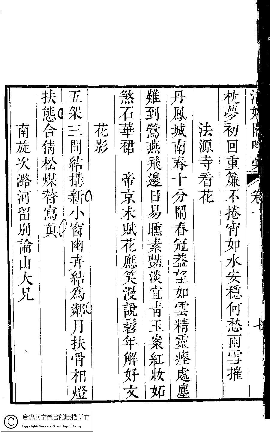 | (PRINT FRIENDLY VERSION) 清娛閣吟稾﹕六卷(清鮑之蕙撰)。嘉慶16年 [1811]刻本 ![]() 頁碼 : 1.7b | 点 击 放 大 | 返回 |