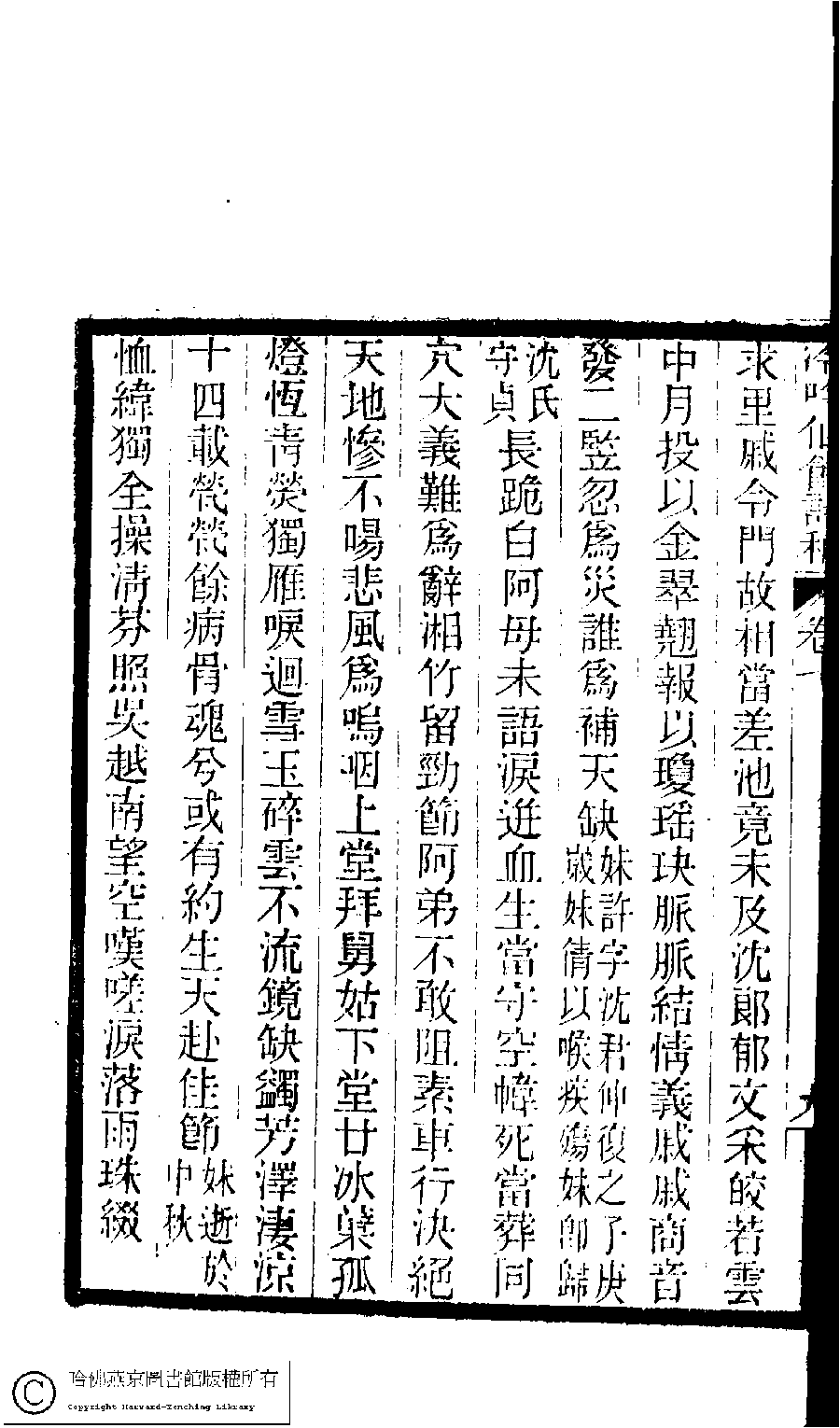 | (PRINT FRIENDLY VERSION) 冷吟仙舘詩稿﹕八卷﹐詩餘一卷﹐文存一卷(淸左錫嘉撰)。淸光緖辛卯(1891)刻本。 ![]() 頁碼 : 7.9b | 点 击 放 大 | 冷吟仙舘詩稿﹕八卷﹐詩餘一卷﹐文存一卷(淸左錫嘉撰)。淸光緖辛卯(1891)刻本。![]() 頁碼 : 7.9a | 点 击 放 大 | 返回 |