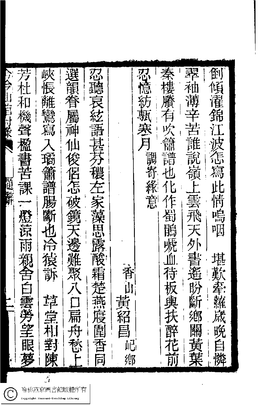 | (PRINT FRIENDLY VERSION) 冷吟仙舘詩稿﹕八卷﹐詩餘一卷﹐文存一卷(淸左錫嘉撰)。淸光緖辛卯(1891)刻本。 ![]() 頁碼 : 附錄.2b | 点 击 放 大 | 冷吟仙舘詩稿﹕八卷﹐詩餘一卷﹐文存一卷(淸左錫嘉撰)。淸光緖辛卯(1891)刻本。![]() 頁碼 : 附錄.2a | 点 击 放 大 | 返回 |