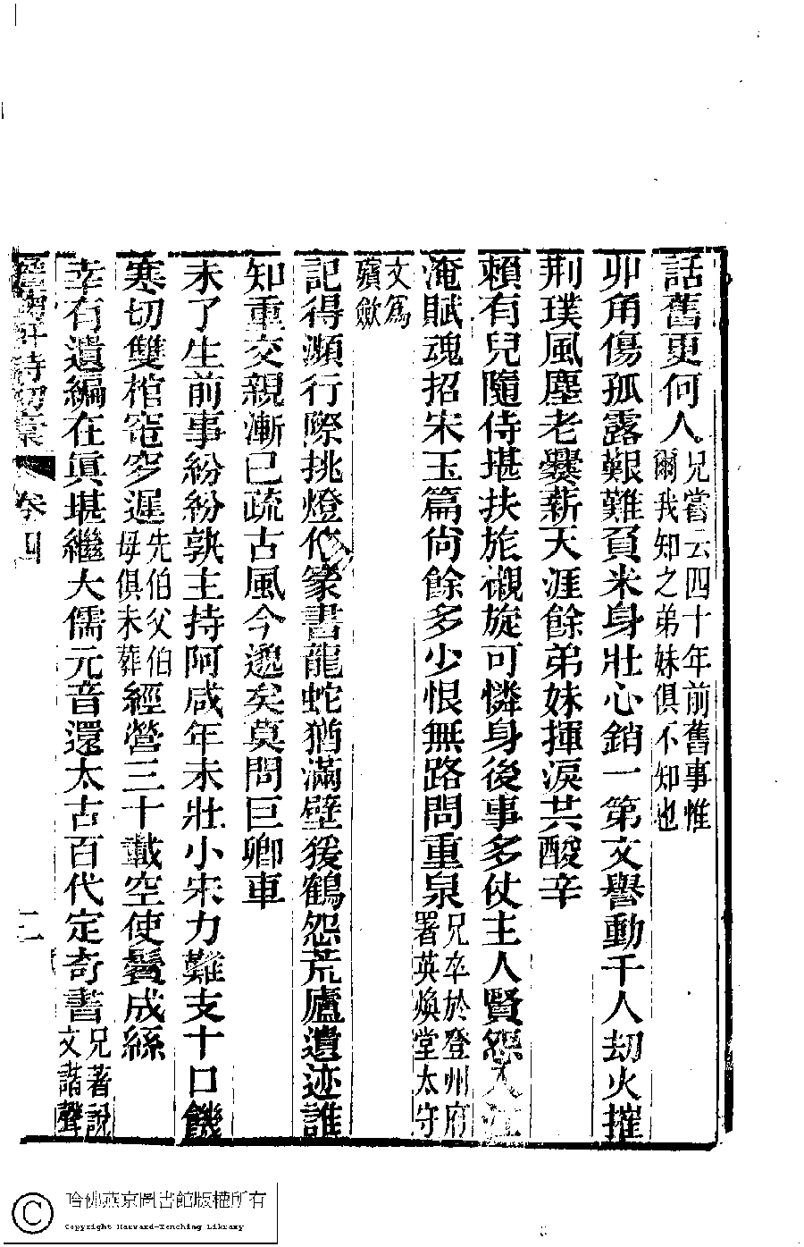 | (PRINT FRIENDLY VERSION) 澹蘜軒詩初稿﹕四卷﹐詞﹕一卷(清張䌌英撰)。道光二十年(1840)刻本。 ![]() 頁碼 : 4.2b | 点 击 放 大 | 澹蘜軒詩初稿﹕四卷﹐詞﹕一卷(清張䌌英撰)。道光二十年(1840)刻本。![]() 頁碼 : 4.2a | 点 击 放 大 | 澹蘜軒詩初稿﹕四卷﹐詞﹕一卷(清張䌌英撰)。道光二十年(1840)刻本。![]() 頁碼 : 4.1b | 点 击 放 大 | 返回 |
