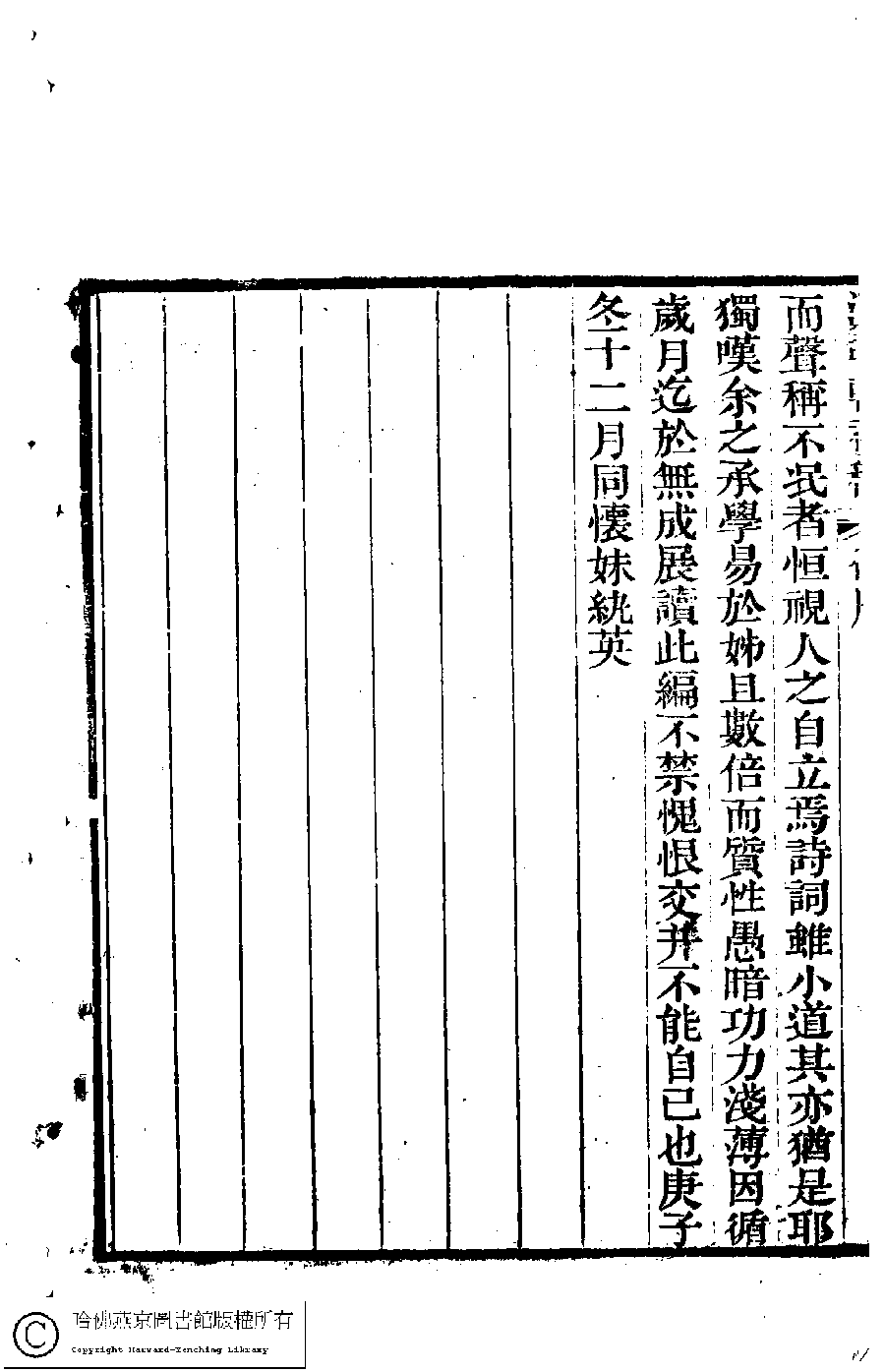 | (PRINT FRIENDLY VERSION) 澹蘜軒詩初稿﹕四卷﹐詞﹕一卷(清張䌌英撰)。道光二十年(1840)刻本。 ![]() 頁碼 : 後序.2b | 点 击 放 大 | 澹蘜軒詩初稿﹕四卷﹐詞﹕一卷(清張䌌英撰)。道光二十年(1840)刻本。![]() 頁碼 : 後序.2a | 点 击 放 大 | 澹蘜軒詩初稿﹕四卷﹐詞﹕一卷(清張䌌英撰)。道光二十年(1840)刻本。![]() 頁碼 : 後序.1b | 点 击 放 大 | 澹蘜軒詩初稿﹕四卷﹐詞﹕一卷(清張䌌英撰)。道光二十年(1840)刻本。![]() 頁碼 : 後序.1a | 点 击 放 大 | 返回 |