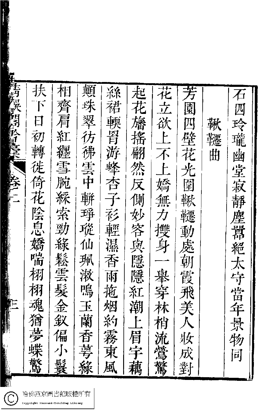 | (PRINT FRIENDLY VERSION) 清娛閣吟稾﹕六卷(清鮑之蕙撰)。嘉慶16年 [1811]刻本 ![]() 頁碼 : 2.3b | 点 击 放 大 | 清娛閣吟稾﹕六卷(清鮑之蕙撰)。嘉慶16年 [1811]刻本![]() 頁碼 : 2.3a | 点 击 放 大 | 返回 |