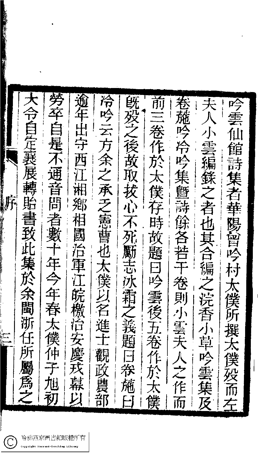 | (PRINT FRIENDLY VERSION) 冷吟仙舘詩稿﹕八卷﹐詩餘一卷﹐文存一卷(淸左錫嘉撰)。淸光緖辛卯(1891)刻本。 ![]() 頁碼 : 吟雲.序.4b | 点 击 放 大 | 冷吟仙舘詩稿﹕八卷﹐詩餘一卷﹐文存一卷(淸左錫嘉撰)。淸光緖辛卯(1891)刻本。![]() 頁碼 : 吟雲.序.4a | 点 击 放 大 | 冷吟仙舘詩稿﹕八卷﹐詩餘一卷﹐文存一卷(淸左錫嘉撰)。淸光緖辛卯(1891)刻本。![]() 頁碼 : 吟雲.序.3b | 点 击 放 大 | 冷吟仙舘詩稿﹕八卷﹐詩餘一卷﹐文存一卷(淸左錫嘉撰)。淸光緖辛卯(1891)刻本。![]() 頁碼 : 吟雲.序.3a | 点 击 放 大 | 返回 |