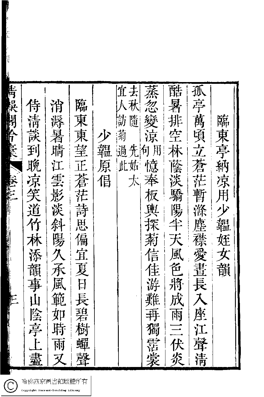詩詞 [臨東亭納凉用少韞姪女韻]