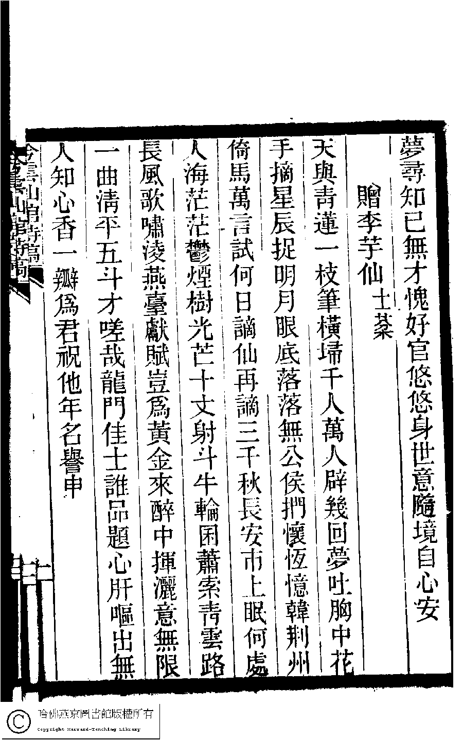 | 原書: 冷吟仙舘詩稿﹕八卷﹐詩餘一卷﹐文存一卷(淸左錫嘉撰) |