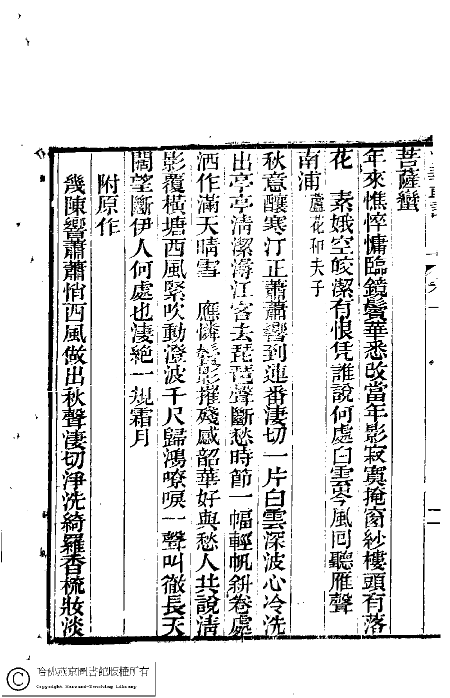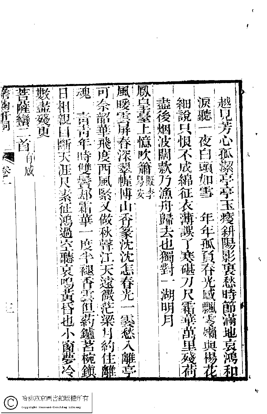 | (PRINT FRIENDLY VERSION) 澹蘜軒詩初稿﹕四卷﹐詞﹕一卷(清張䌌英撰)。道光二十年(1840)刻本。 ![]() 頁碼 : 詞.3a | 点 击 放 大 | 澹蘜軒詩初稿﹕四卷﹐詞﹕一卷(清張䌌英撰)。道光二十年(1840)刻本。![]() 頁碼 : 詞.2b | 点 击 放 大 | 返回 |