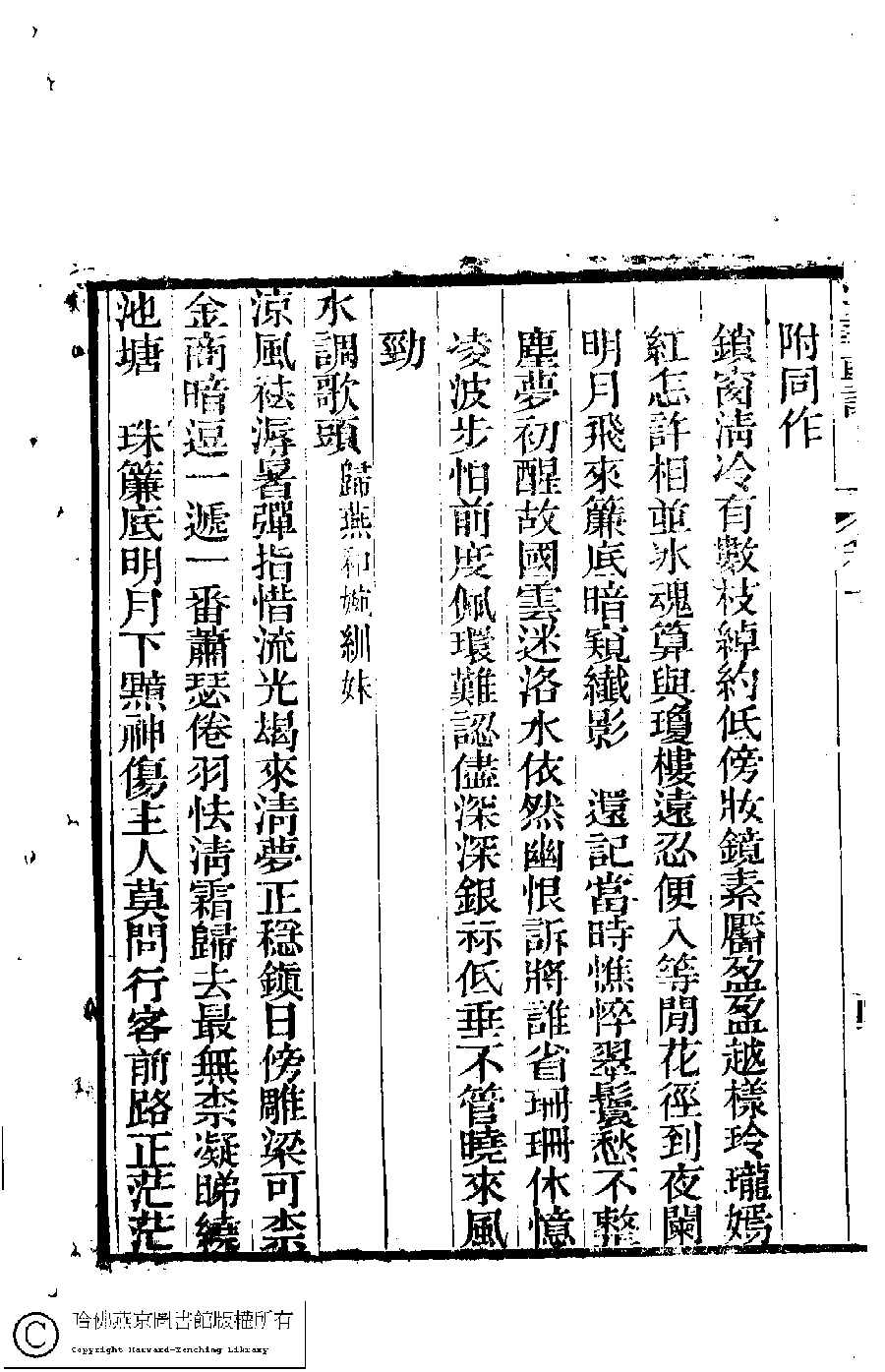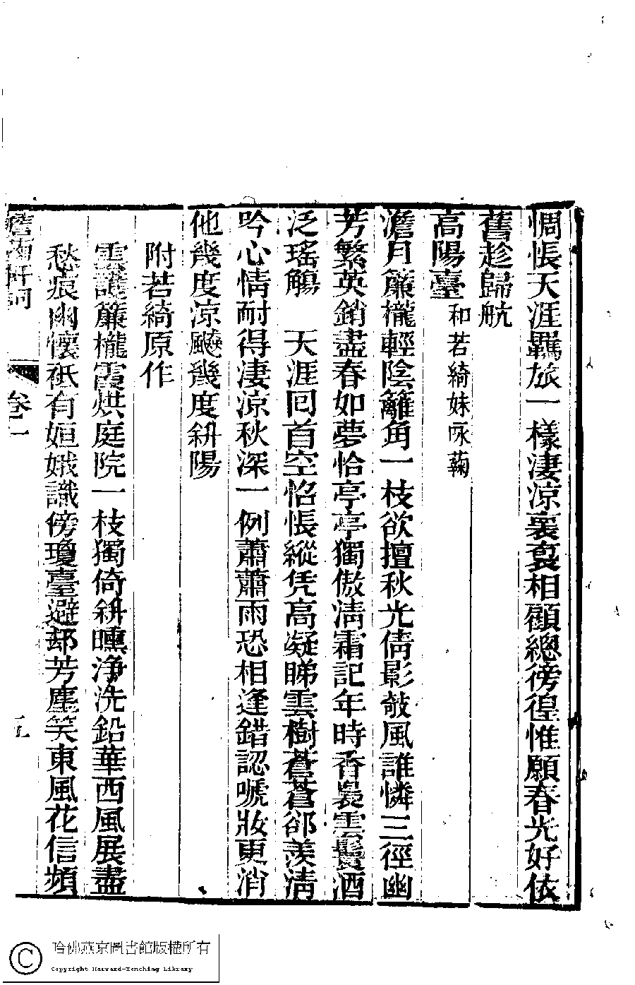 | (PRINT FRIENDLY VERSION) 澹蘜軒詩初稿﹕四卷﹐詞﹕一卷(清張䌌英撰)。道光二十年(1840)刻本。 ![]() 頁碼 : 詞.5a | 点 击 放 大 | 澹蘜軒詩初稿﹕四卷﹐詞﹕一卷(清張䌌英撰)。道光二十年(1840)刻本。![]() 頁碼 : 詞.4b | 点 击 放 大 | 返回 |