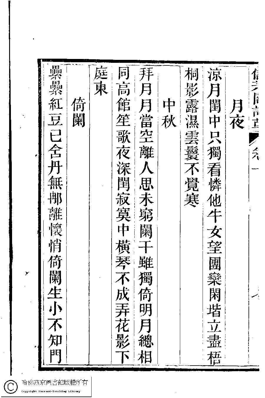 | (PRINT FRIENDLY VERSION) 信芳閣詩草﹕五卷(清陳蘊蓮撰)。清咸豐九年(1859)刻本。 ![]() 頁碼 : 1.8a | 点 击 放 大 | 信芳閣詩草﹕五卷(清陳蘊蓮撰)。清咸豐九年(1859)刻本。![]() 頁碼 : 1.7b | 点 击 放 大 | 返回 |