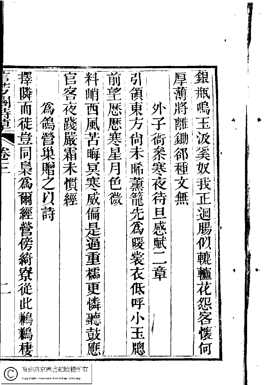 | (PRINT FRIENDLY VERSION) 信芳閣詩草﹕五卷(清陳蘊蓮撰)。清咸豐九年(1859)刻本。 ![]() 頁碼 : 3.2a | 点 击 放 大 | 信芳閣詩草﹕五卷(清陳蘊蓮撰)。清咸豐九年(1859)刻本。![]() 頁碼 : 3.1b | 点 击 放 大 | 返回 |