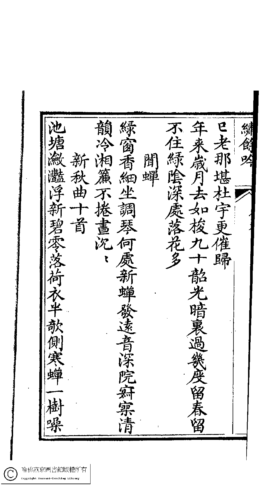 | 原書: 繡餘吟﹕六卷﹐附詩餘一卷(清馮思慧撰) |