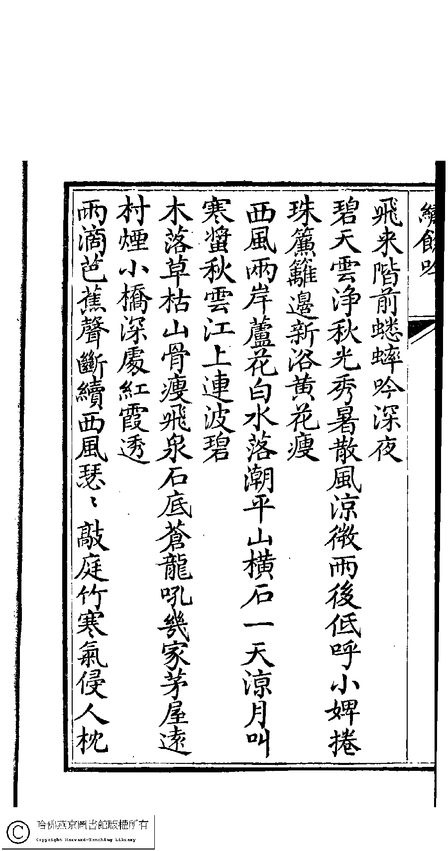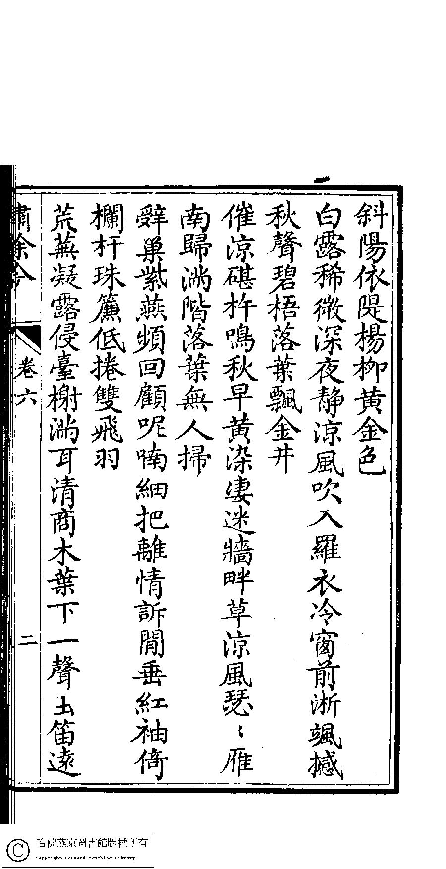 | 原書: 繡餘吟﹕六卷﹐附詩餘一卷(清馮思慧撰) |