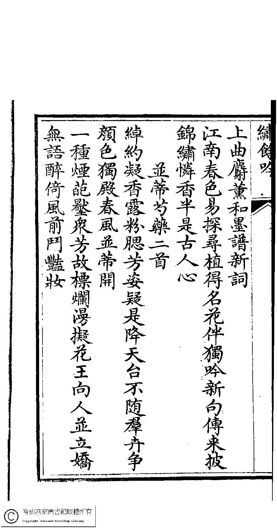 | 原書: 繡餘吟﹕六卷﹐附詩餘一卷(清馮思慧撰) |