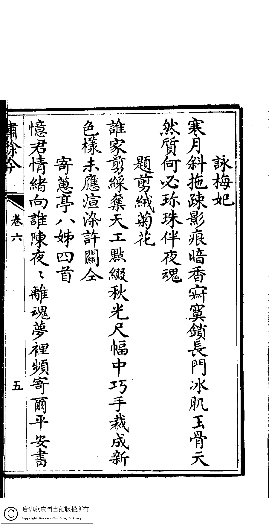 | 原書: 繡餘吟﹕六卷﹐附詩餘一卷(清馮思慧撰) |