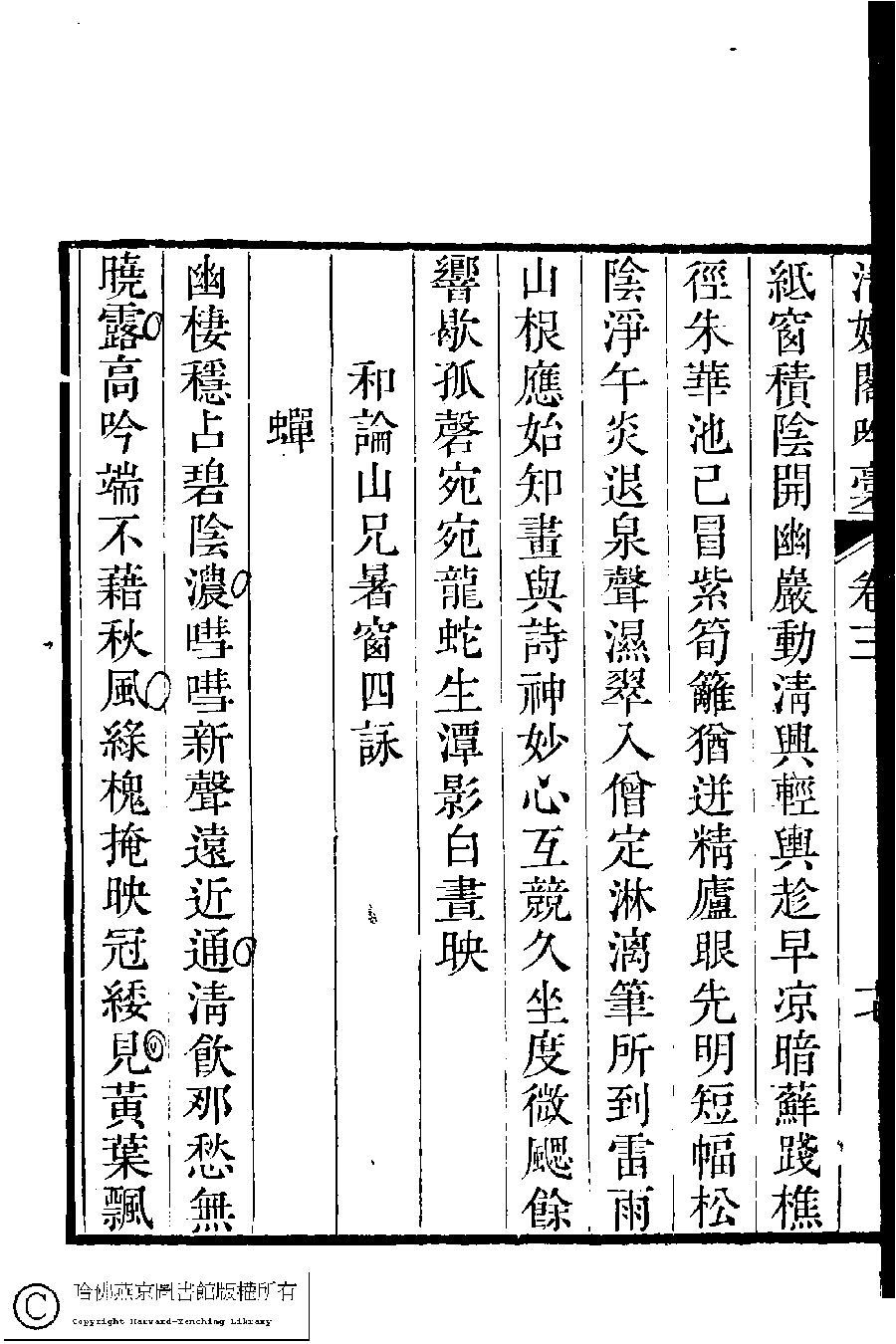 | (PRINT FRIENDLY VERSION) 清娛閣吟稾﹕六卷(清鮑之蕙撰)。嘉慶16年 [1811]刻本 ![]() 頁碼 : 3.17b | 点 击 放 大 | 清娛閣吟稾﹕六卷(清鮑之蕙撰)。嘉慶16年 [1811]刻本![]() 頁碼 : 3.17a | 点 击 放 大 | 返回 |