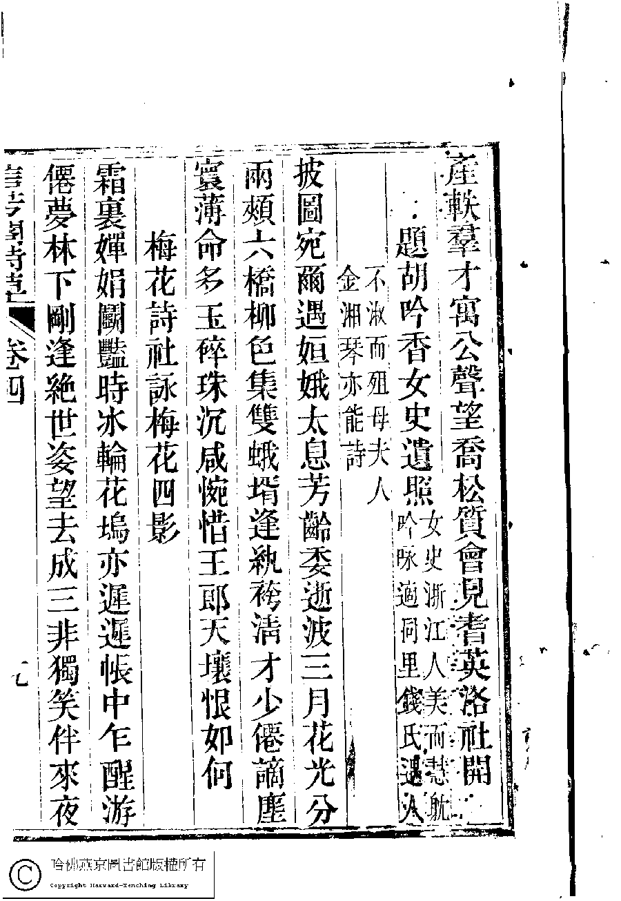 | (PRINT FRIENDLY VERSION) 信芳閣詩草﹕五卷(清陳蘊蓮撰)。清咸豐九年(1859)刻本。 ![]() 頁碼 : 4.19a | 点 击 放 大 | 返回 |