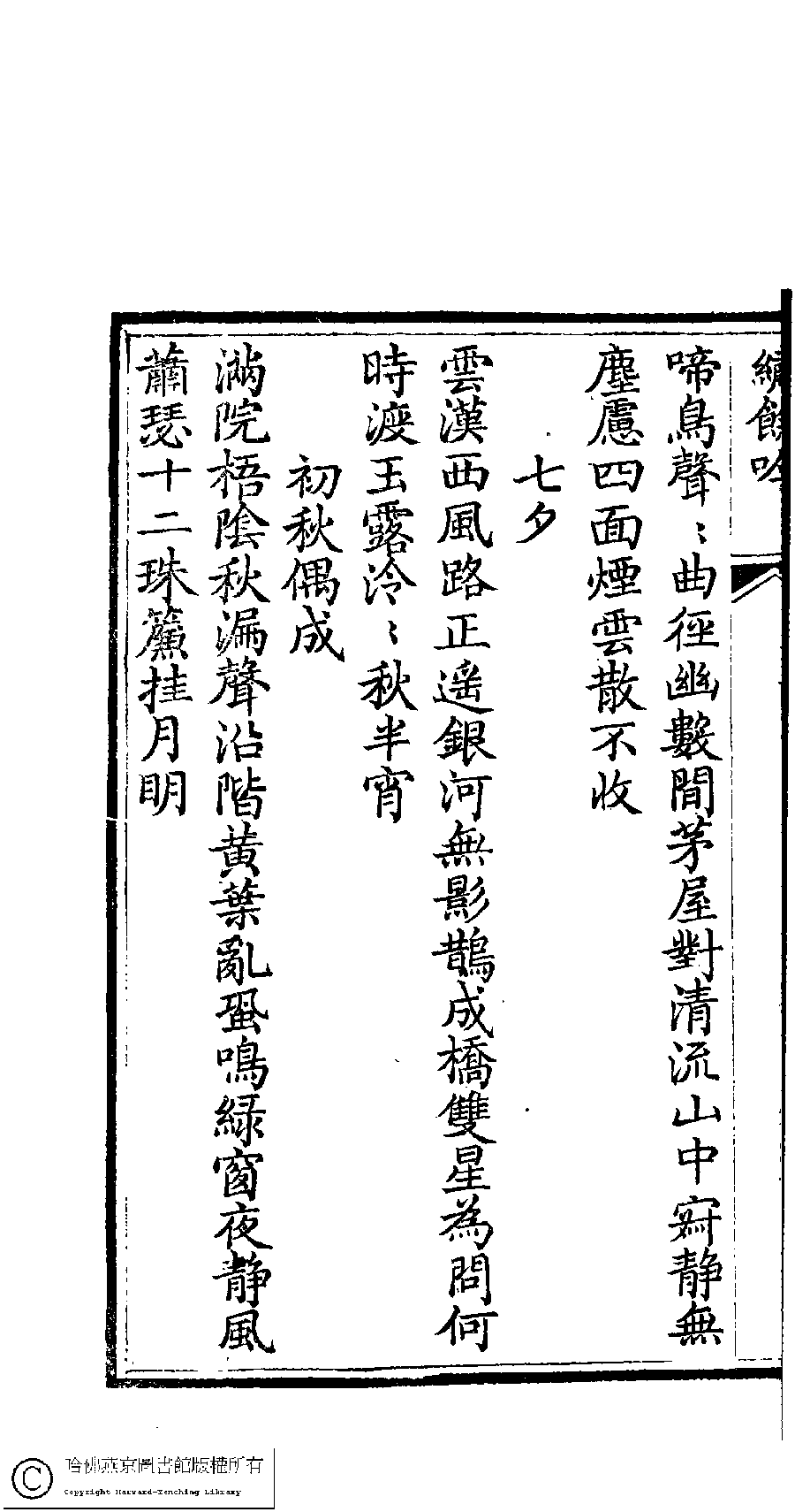 | 原書: 繡餘吟﹕六卷﹐附詩餘一卷(清馮思慧撰) |