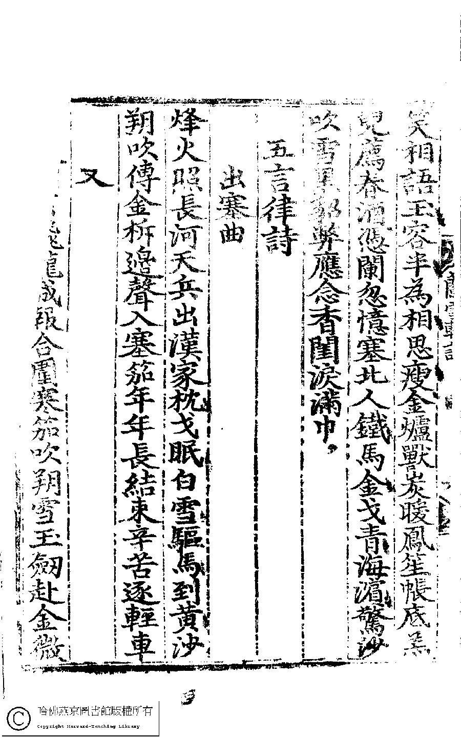 | (PRINT FRIENDLY VERSION) 蘭雪軒詩(Nansŏrhŏn si) (朝鮮許蘭雪撰)。朝鮮(1608?)刻本。 ![]() 頁碼 : 7a | 点 击 放 大 | 蘭雪軒詩(Nansŏrhŏn si) (朝鮮許蘭雪撰)。朝鮮(1608?)刻本。![]() 頁碼 : 6b | 点 击 放 大 | 返回 |