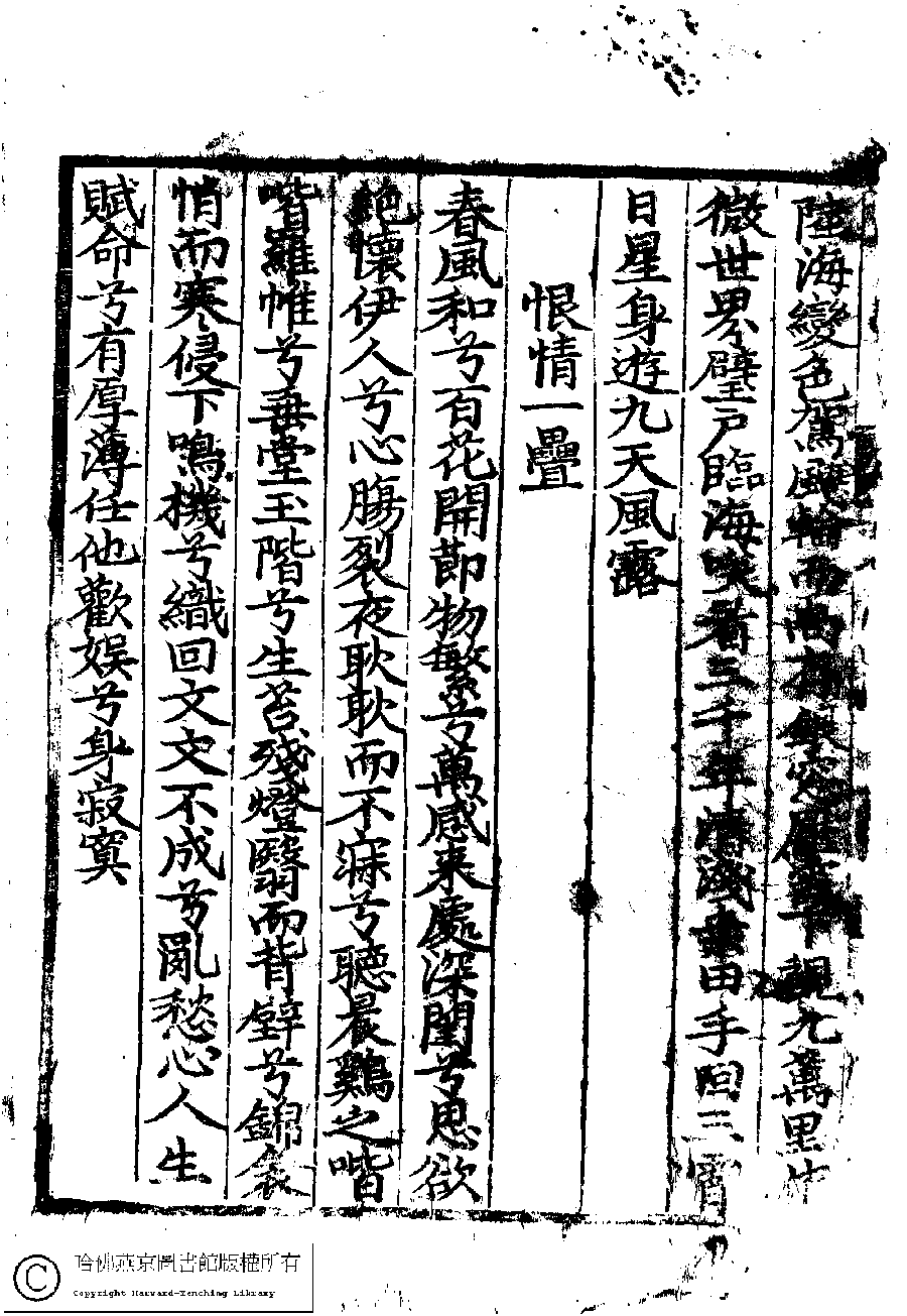 | (PRINT FRIENDLY VERSION) 蘭雪軒詩(Nansŏrhŏn si) (朝鮮許蘭雪撰)。朝鮮(1608?)刻本。 ![]() 頁碼 : 33b | 点 击 放 大 | 返回 |