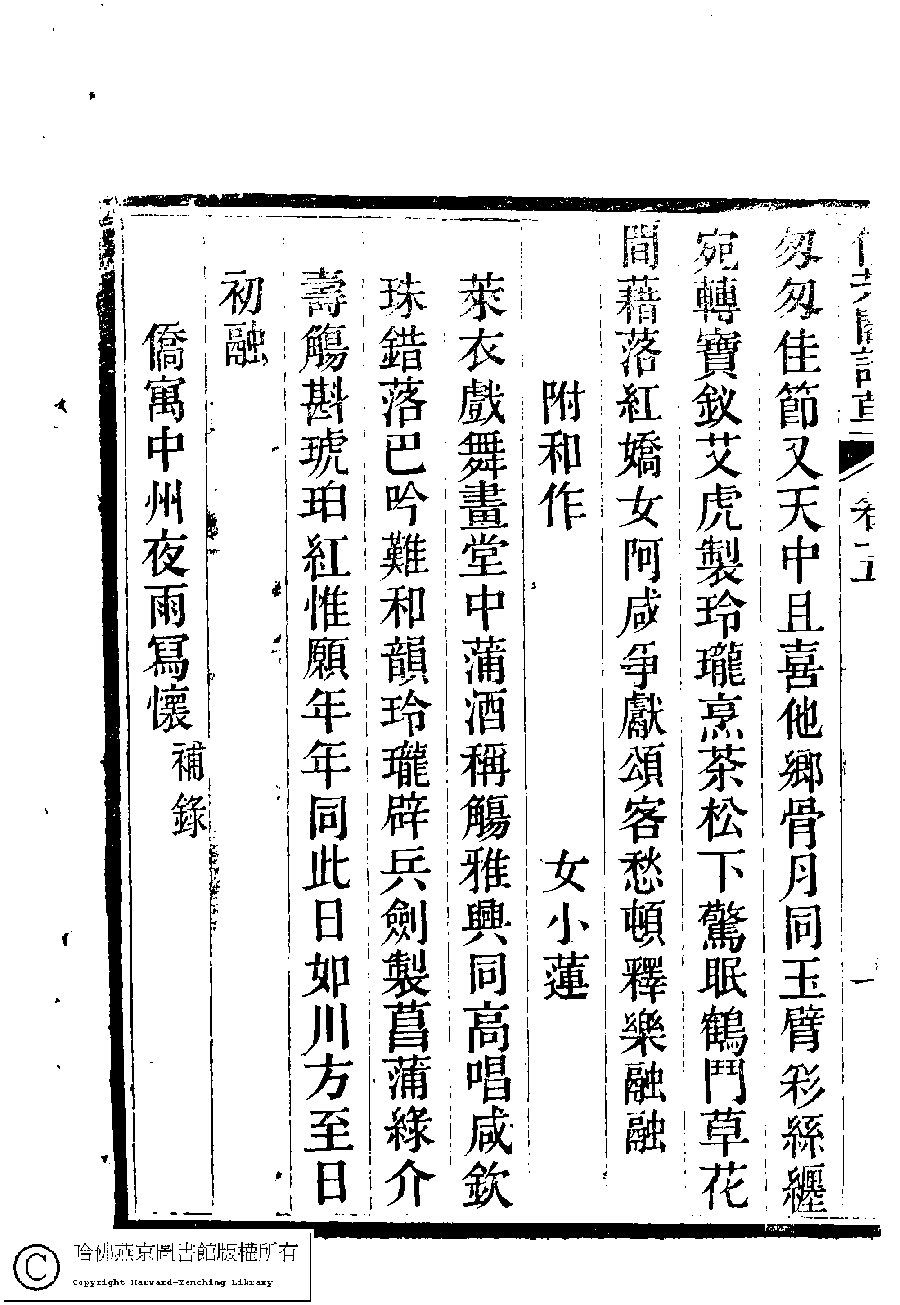 | (PRINT FRIENDLY VERSION) 信芳閣詩草﹕五卷(清陳蘊蓮撰)。清咸豐九年(1859)刻本。 ![]() 頁碼 : 5.7b | 点 击 放 大 | 返回 |