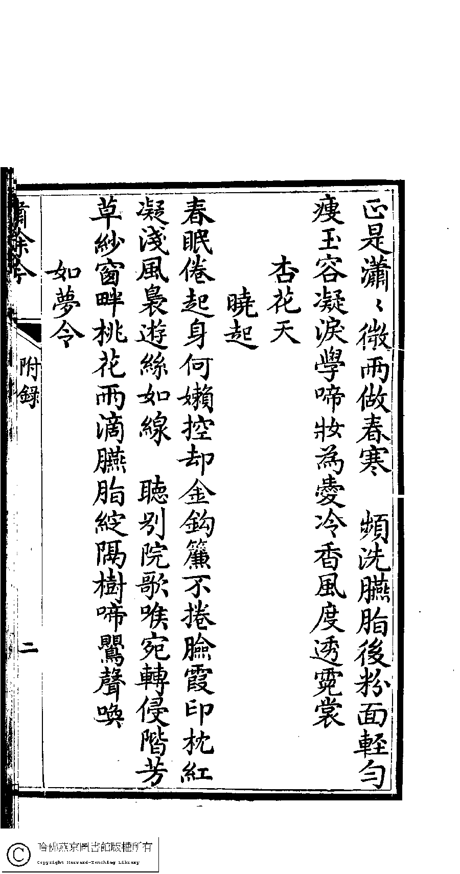 | 原書: 繡餘吟﹕六卷﹐附詩餘一卷(清馮思慧撰) |