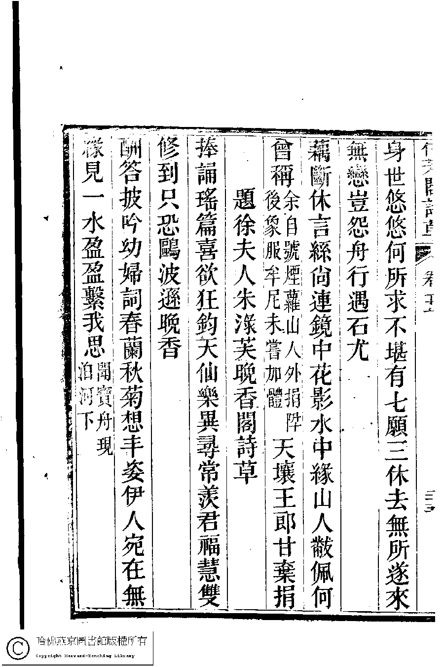 | (PRINT FRIENDLY VERSION) 信芳閣詩草﹕五卷(清陳蘊蓮撰)。清咸豐九年(1859)刻本。 ![]() 頁碼 : 25b | 点 击 放 大 | 信芳閣詩草﹕五卷(清陳蘊蓮撰)。清咸豐九年(1859)刻本。![]() 頁碼 : 5.25a | 点 击 放 大 | 返回 |