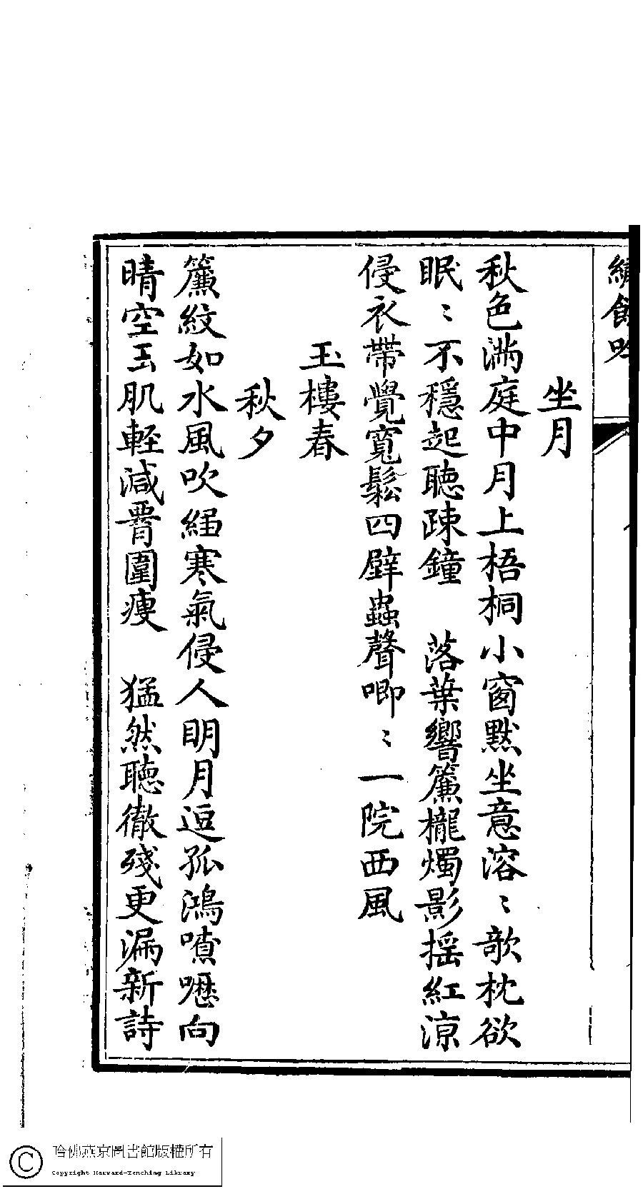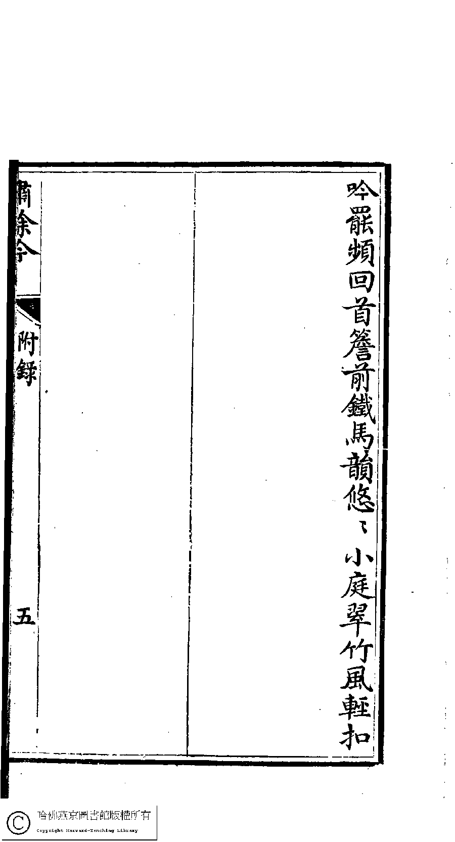 | 原書: 繡餘吟﹕六卷﹐附詩餘一卷(清馮思慧撰) |