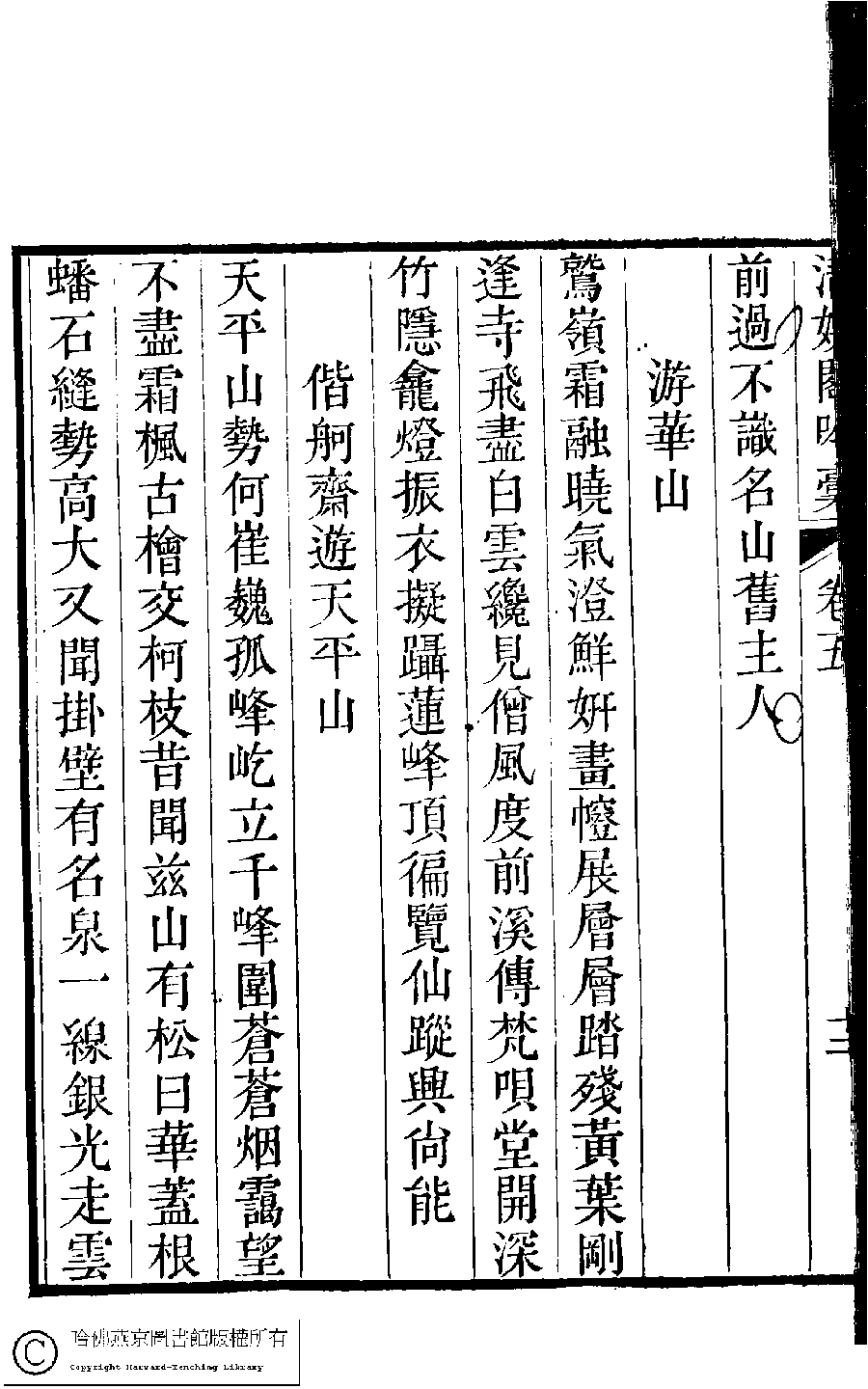 | (PRINT FRIENDLY VERSION) 清娛閣吟稾﹕六卷(清鮑之蕙撰)。嘉慶16年 [1811]刻本 ![]() 頁碼 : 5.13a | 点 击 放 大 | 清娛閣吟稾﹕六卷(清鮑之蕙撰)。嘉慶16年 [1811]刻本![]() 頁碼 : 5.12b | 点 击 放 大 | 返回 |