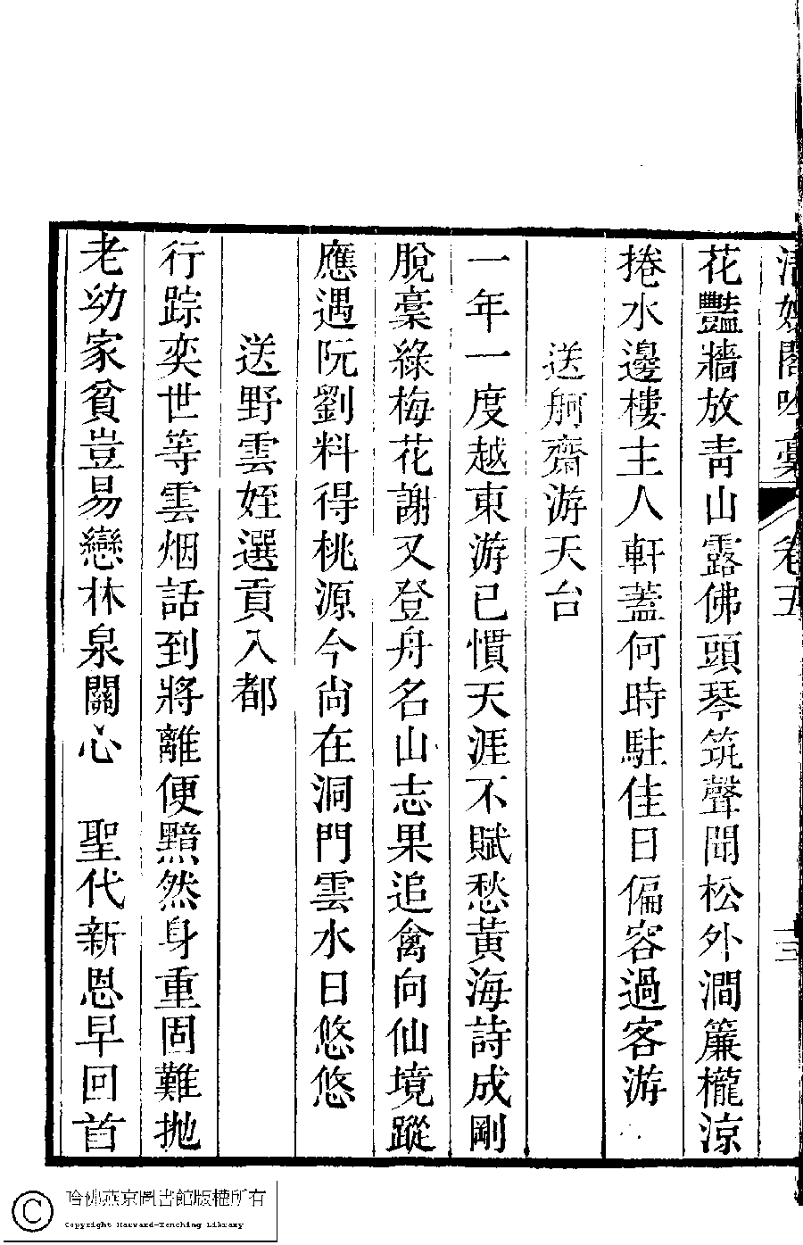 | (PRINT FRIENDLY VERSION) 清娛閣吟稾﹕六卷(清鮑之蕙撰)。嘉慶16年 [1811]刻本 ![]() 頁碼 : 5.13b | 点 击 放 大 | 清娛閣吟稾﹕六卷(清鮑之蕙撰)。嘉慶16年 [1811]刻本![]() 頁碼 : 5.13a | 点 击 放 大 | 返回 |