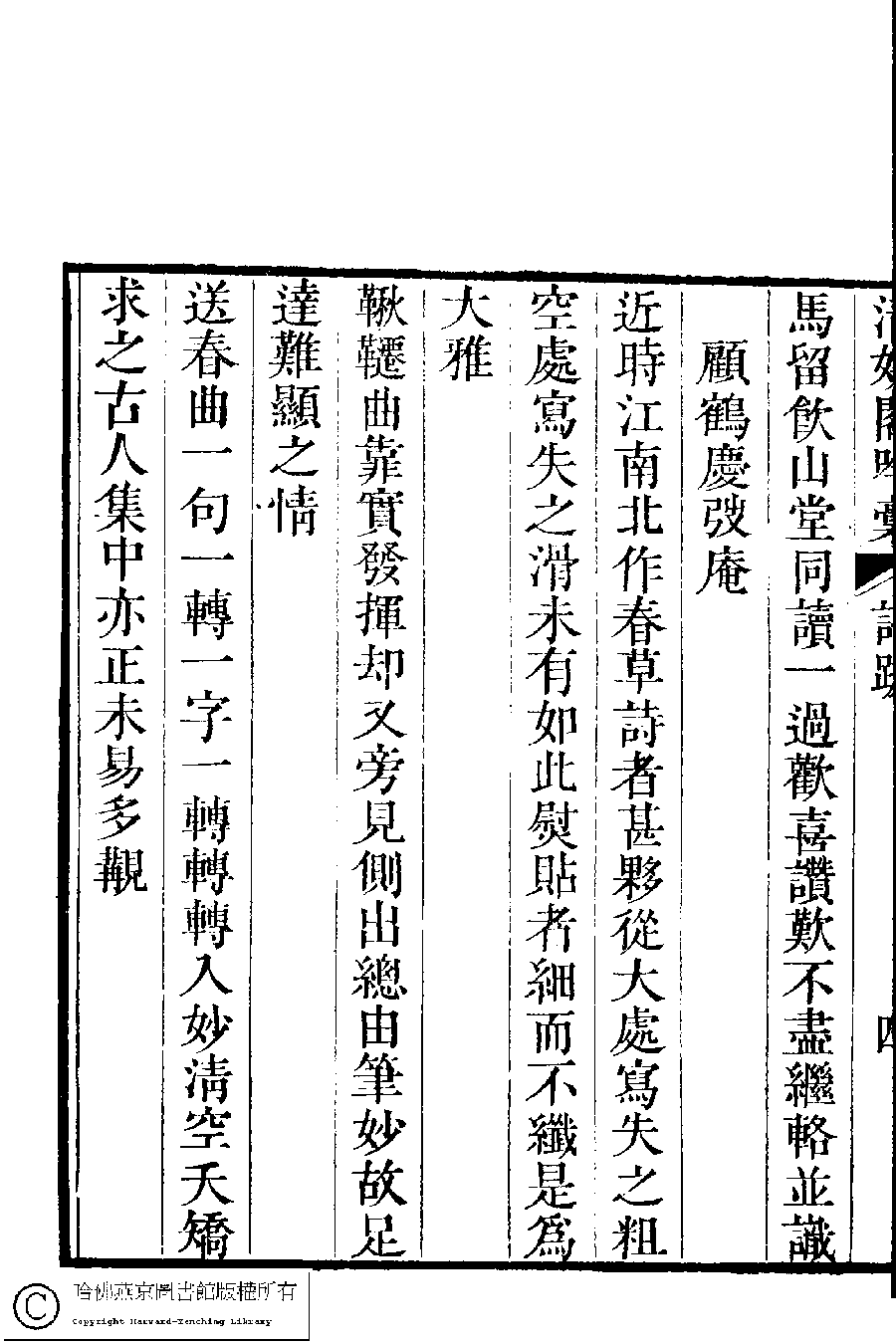 | (PRINT FRIENDLY VERSION) 清娛閣吟稾﹕六卷(清鮑之蕙撰)。嘉慶16年 [1811]刻本 ![]() 頁碼 : 評跋.4b | 点 击 放 大 | 清娛閣吟稾﹕六卷(清鮑之蕙撰)。嘉慶16年 [1811]刻本![]() 頁碼 : 評跋.4a | 点 击 放 大 | 返回 |