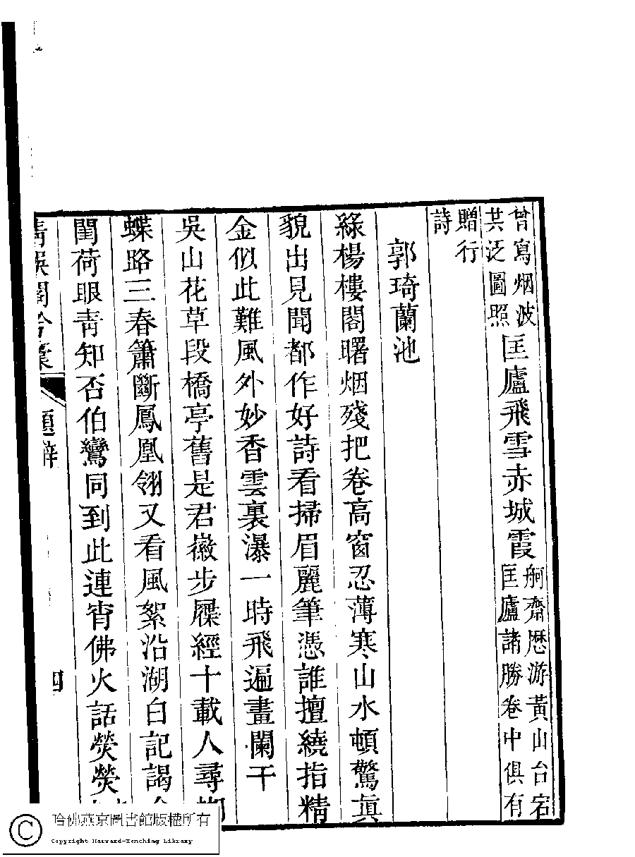 | (PRINT FRIENDLY VERSION) 清娛閣吟稾﹕六卷(清鮑之蕙撰)。嘉慶16年 [1811]刻本 ![]() 頁碼 : 題辭.4b | 点 击 放 大 | 清娛閣吟稾﹕六卷(清鮑之蕙撰)。嘉慶16年 [1811]刻本![]() 頁碼 : 題辭.4a | 点 击 放 大 | 返回 |
