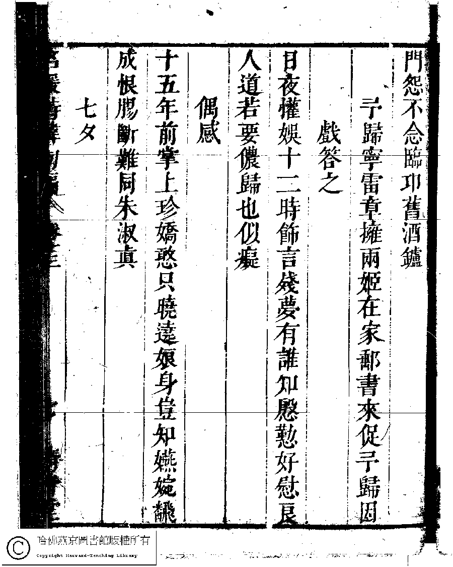 | (PRINT FRIENDLY VERSION) 名媛詩緯初編(清王端淑輯)。清康熙六年(1667)清音堂刻本 ![]() 頁碼 : 13.7a | 点 击 放 大 | 返回 |