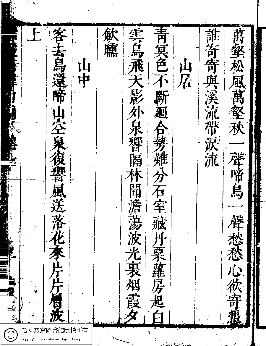 | (PRINT FRIENDLY VERSION) 名媛詩緯初編(清王端淑輯)。清康熙六年(1667)清音堂刻本 ![]() 頁碼 : 7.3a | 点 击 放 大 | 返回 |