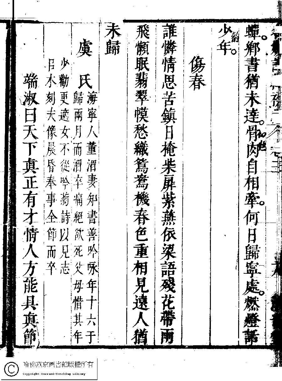 | (PRINT FRIENDLY VERSION) 名媛詩緯初編(清王端淑輯)。清康熙六年(1667)清音堂刻本 ![]() 頁碼 : 3.19b | 点 击 放 大 | 返回 |