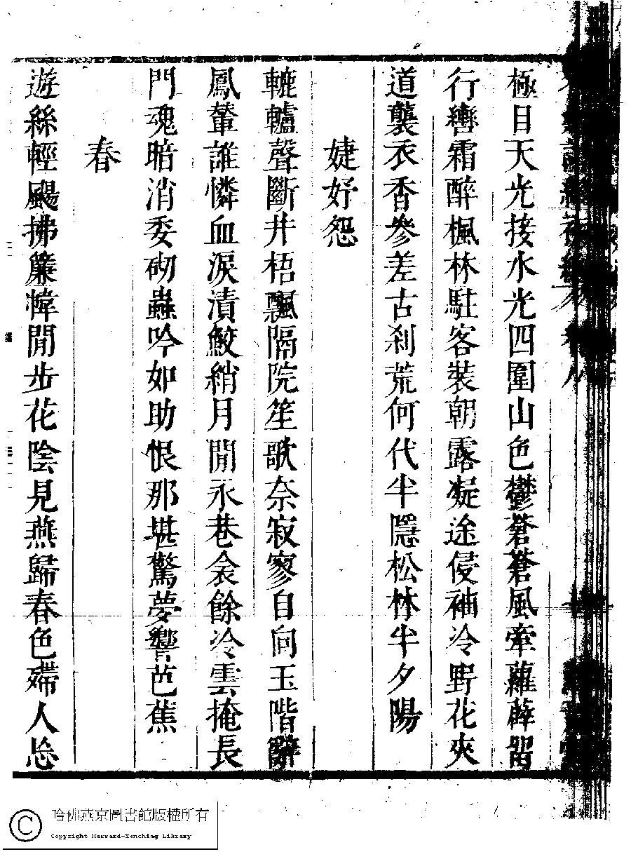 | (PRINT FRIENDLY VERSION) 名媛詩緯初編(清王端淑輯)。清康熙六年(1667)清音堂刻本 ![]() 頁碼 : 8.7b | 点 击 放 大 | 返回 |