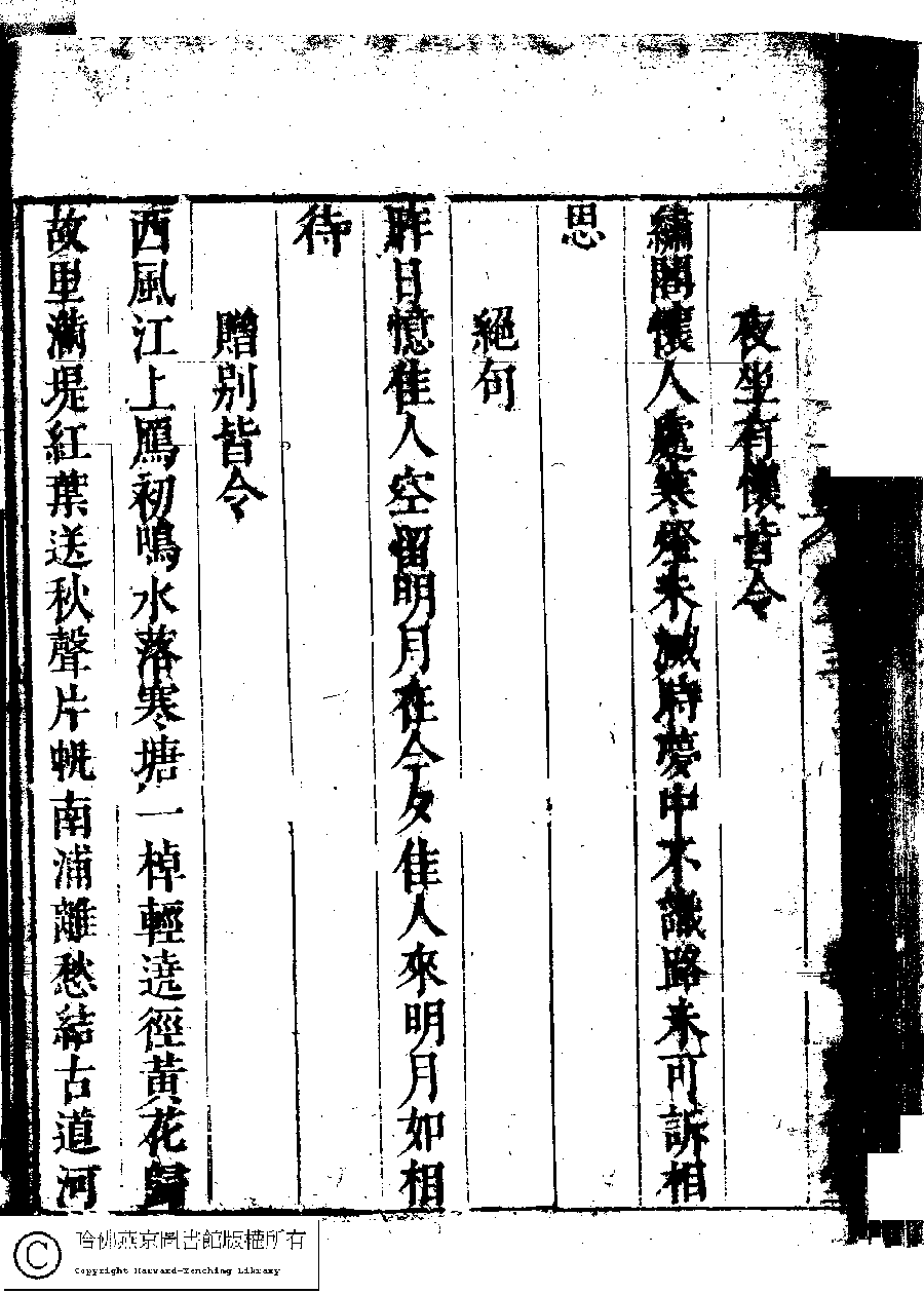 | (PRINT FRIENDLY VERSION) 名媛詩緯初編(清王端淑輯)。清康熙六年(1667)清音堂刻本 ![]() 頁碼 : 13.37b | 点 击 放 大 | 返回 |