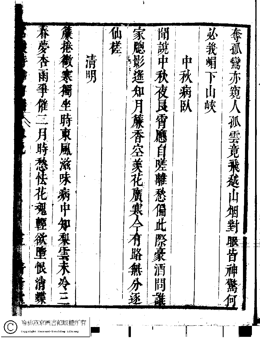 | (PRINT FRIENDLY VERSION) 名媛詩緯初編(清王端淑輯)。清康熙六年(1667)清音堂刻本 ![]() 頁碼 : 9.15a | 点 击 放 大 | 返回 |