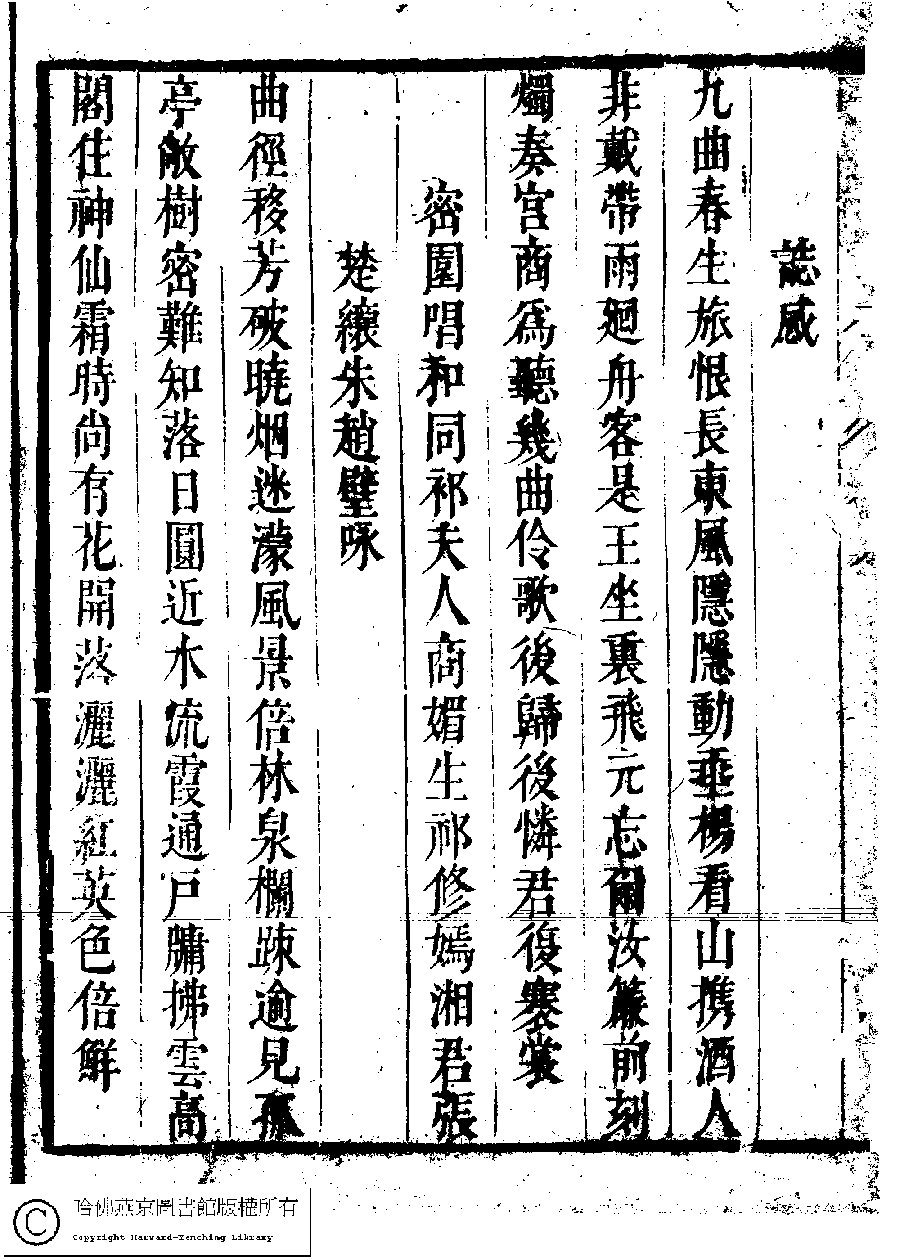 | (PRINT FRIENDLY VERSION) 名媛詩緯初編(清王端淑輯)。清康熙六年(1667)清音堂刻本 ![]() 頁碼 : 9.20b | 点 击 放 大 | 返回 |