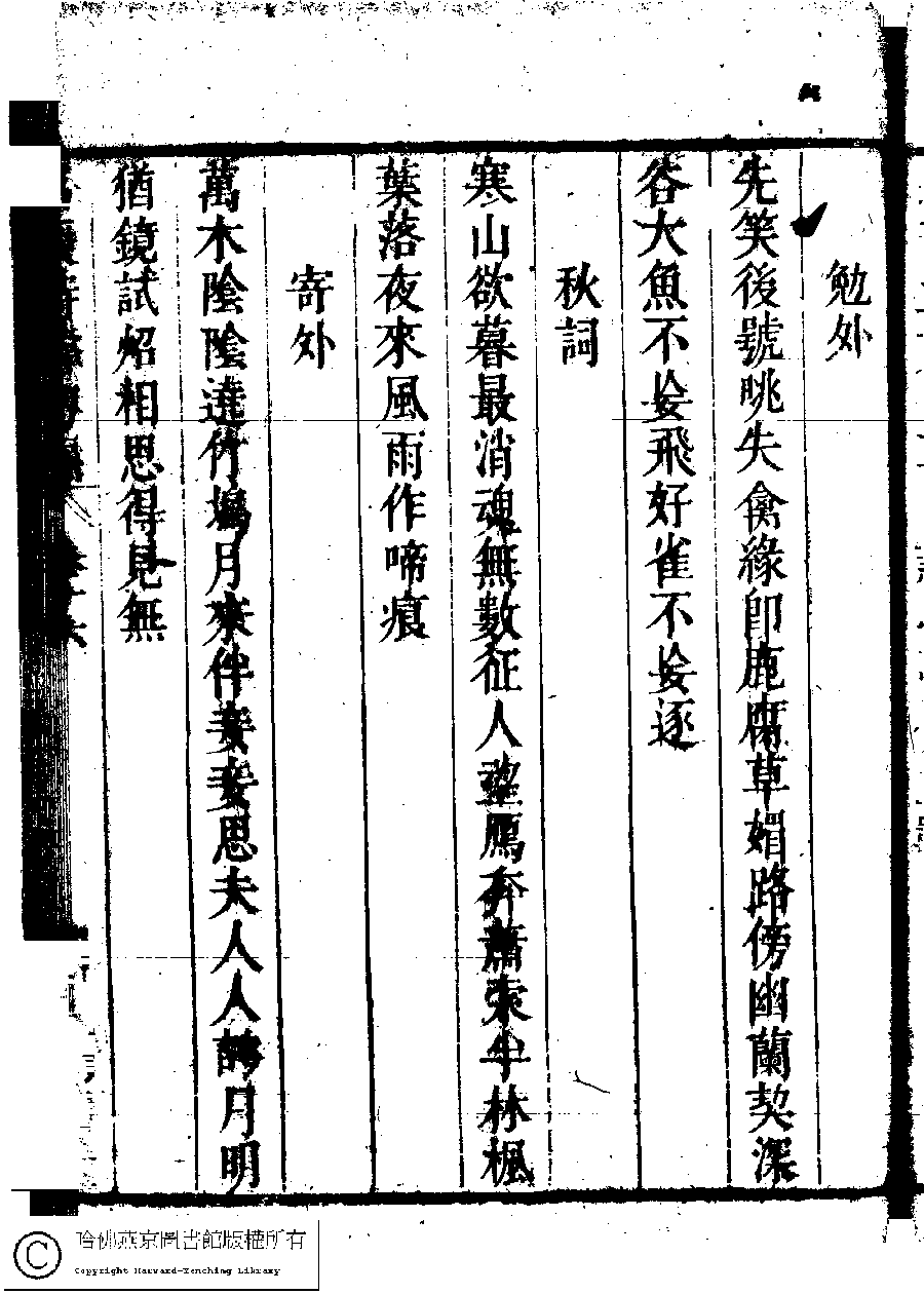 | (PRINT FRIENDLY VERSION) 名媛詩緯初編(清王端淑輯)。清康熙六年(1667)清音堂刻本 ![]() 頁碼 : 16.4a | 点 击 放 大 | 返回 |