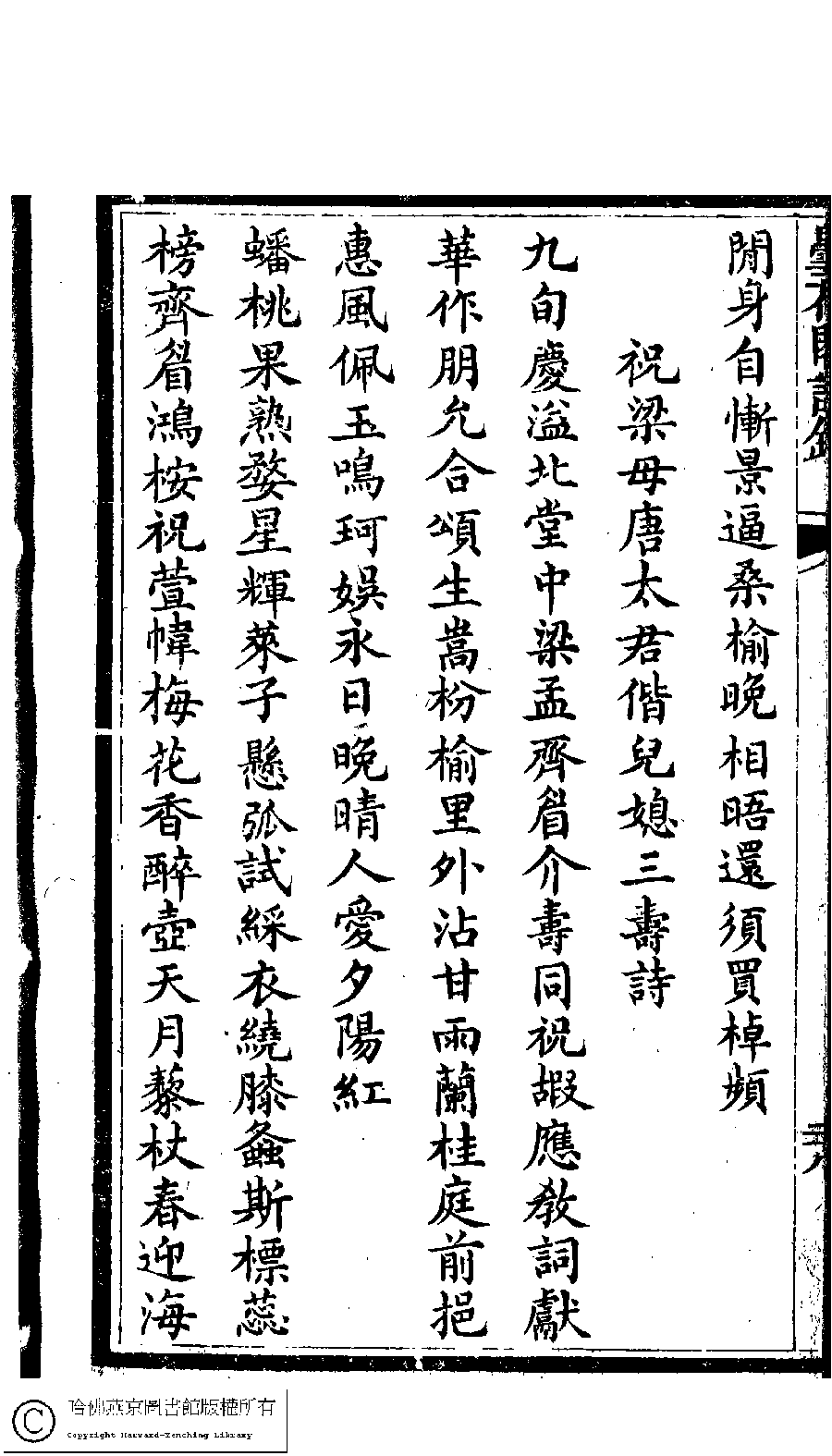 詩詞 [祝梁母唐太君偕兒媳三壽詩(二首)]