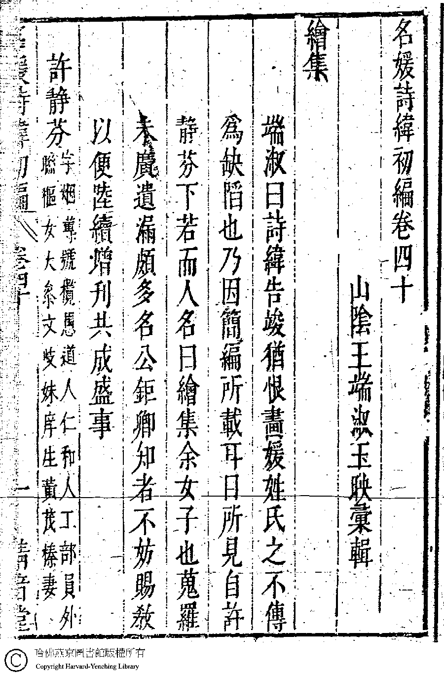 名媛詩緯初編(清王端淑輯)。清康熙六年(1667)清音堂刻本