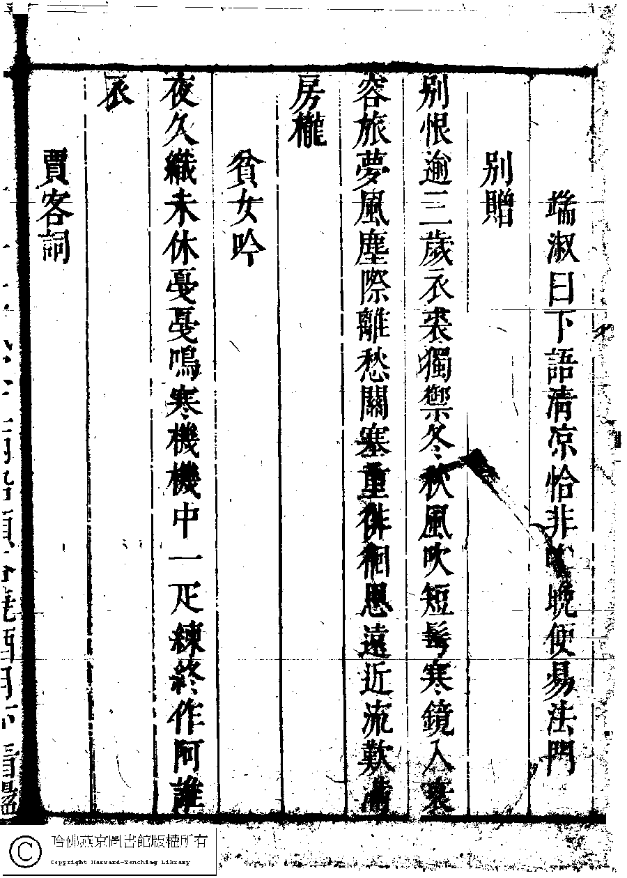| (PRINT FRIENDLY VERSION) 名媛詩緯初編(清王端淑輯)。清康熙六年(1667)清音堂刻本 ![]() 頁碼 : 28.9a | 点 击 放 大 | 名媛詩緯初編(清王端淑輯)。清康熙六年(1667)清音堂刻本![]() 頁碼 : 28.8b | 点 击 放 大 | 返回 |