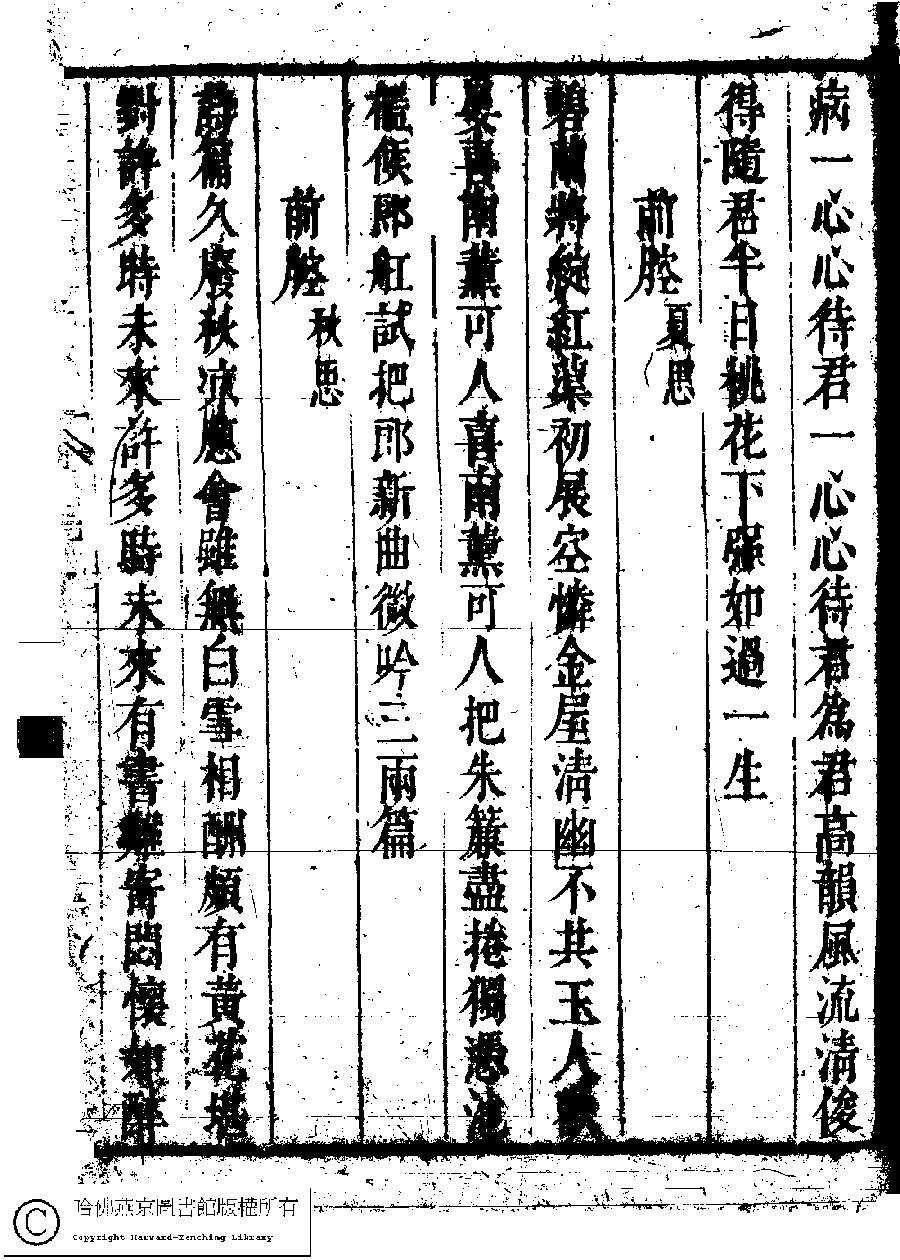 | (PRINT FRIENDLY VERSION) 名媛詩緯初編(清王端淑輯)。清康熙六年(1667)清音堂刻本 ![]() 頁碼 : 38.3a | 点 击 放 大 | 返回 |