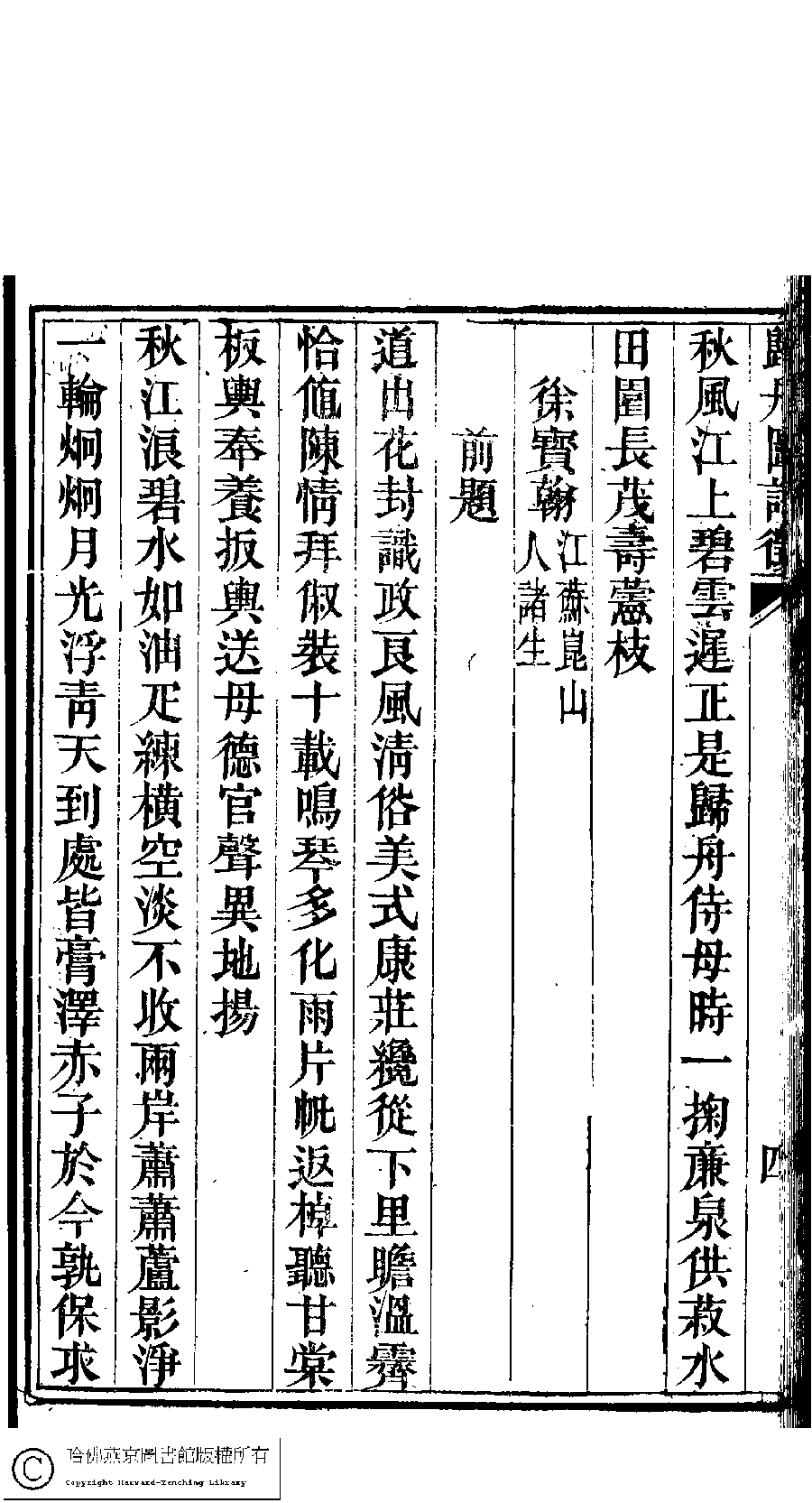 | (PRINT FRIENDLY VERSION) 詠雪樓稿﹕五卷,卷首一卷,附一卷(清甘立媃撰)。清道光二十三年(1843)徐心田半偈齋刻本。 ![]() 頁碼 : 5.詩徵.4b | 点 击 放 大 | 詠雪樓稿﹕五卷,卷首一卷,附一卷(清甘立媃撰)。清道光二十三年(1843)徐心田半偈齋刻本。![]() 頁碼 : 5.詩徵.4a | 点 击 放 大 | 返回 |