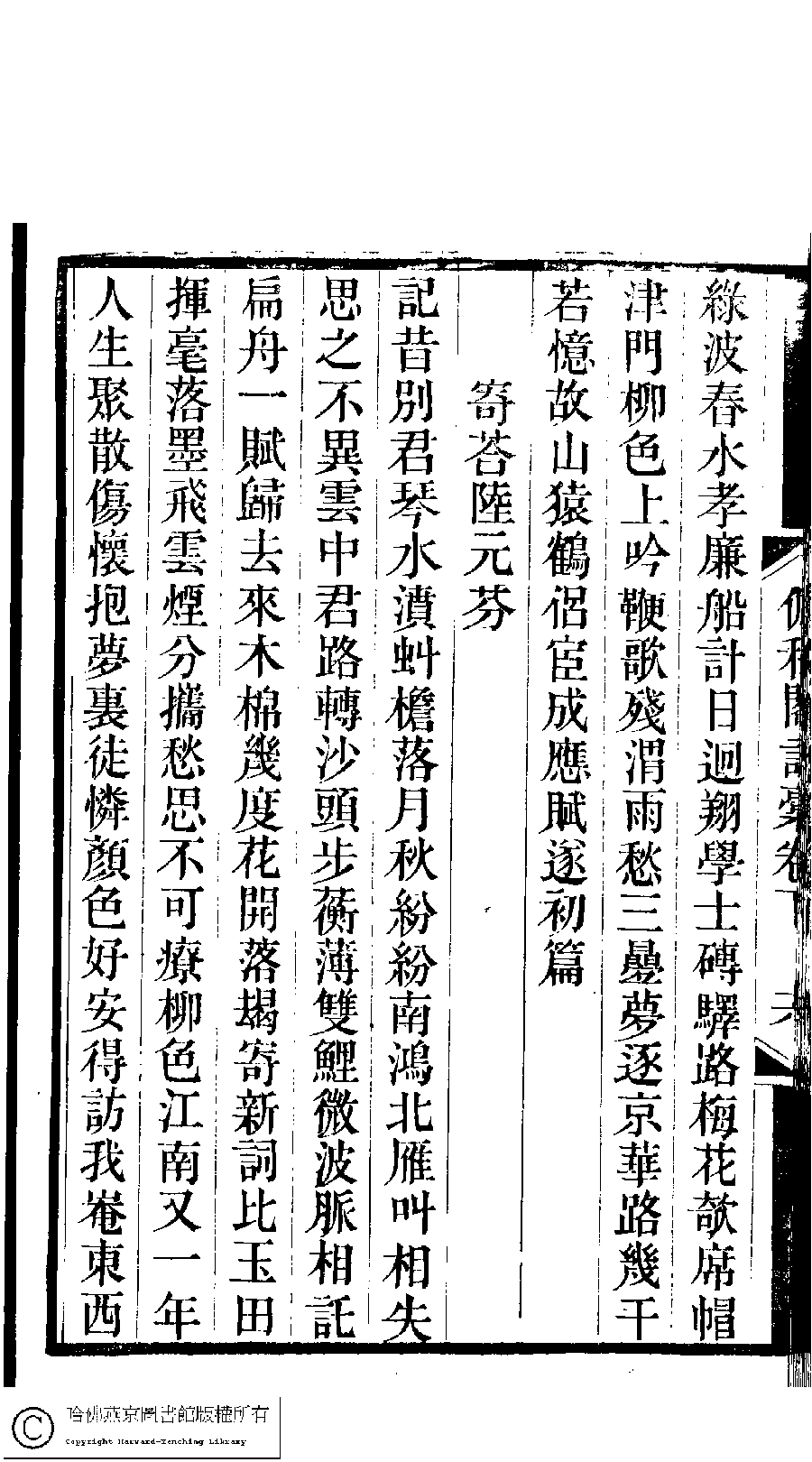 | (PRINT FRIENDLY VERSION) 佩秋閣遺稿﹕二卷﹐詞稿﹕一卷﹐文稿﹕一卷(清吳茝撰)。清光緒十四年(1888)刻本。 ![]() 頁碼 : 2.16b | 点 击 放 大 | 佩秋閣遺稿﹕二卷﹐詞稿﹕一卷﹐文稿﹕一卷(清吳茝撰)。清光緒十四年(1888)刻本。![]() 頁碼 : 2.16a | 点 击 放 大 | 返回 |