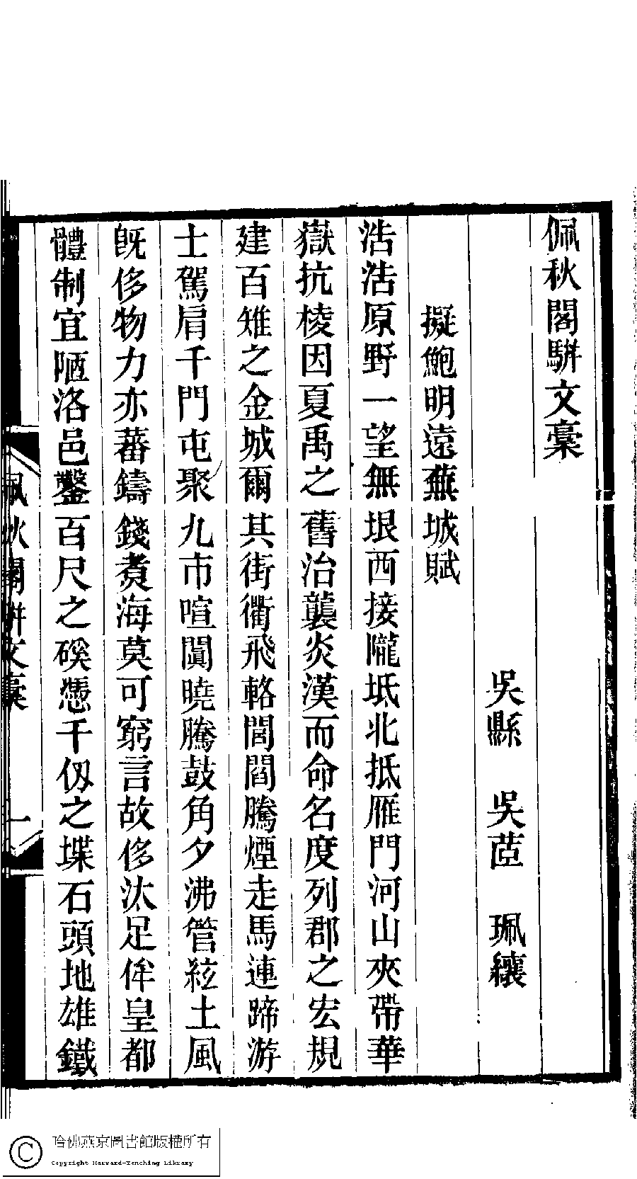 | 原書: 佩秋閣遺稿﹕二卷﹐詞稿﹕一卷﹐文稿﹕一卷(清吳茝撰) |