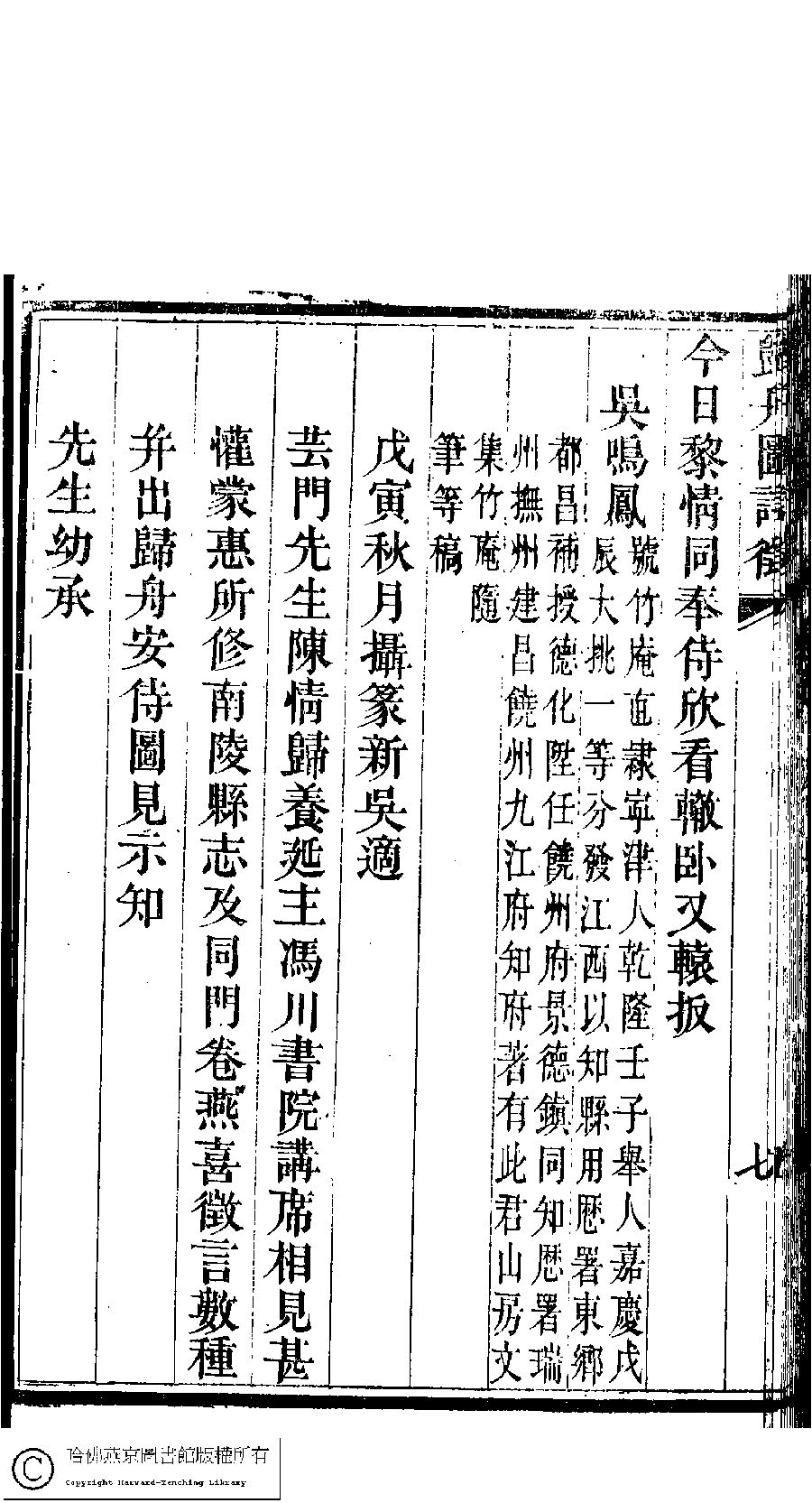 | (PRINT FRIENDLY VERSION) 詠雪樓稿﹕五卷,卷首一卷,附一卷(清甘立媃撰)。清道光二十三年(1843)徐心田半偈齋刻本。 ![]() 頁碼 : 5.詩徵.7b | 点 击 放 大 | 詠雪樓稿﹕五卷,卷首一卷,附一卷(清甘立媃撰)。清道光二十三年(1843)徐心田半偈齋刻本。![]() 頁碼 : 5.詩徵.7a | 点 击 放 大 | 返回 |