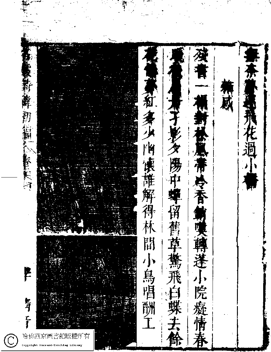 | (PRINT FRIENDLY VERSION) 名媛詩緯初編(清王端淑輯)。清康熙六年(1667)清音堂刻本 ![]() 頁碼 : 24.30a | 点 击 放 大 | 返回 |