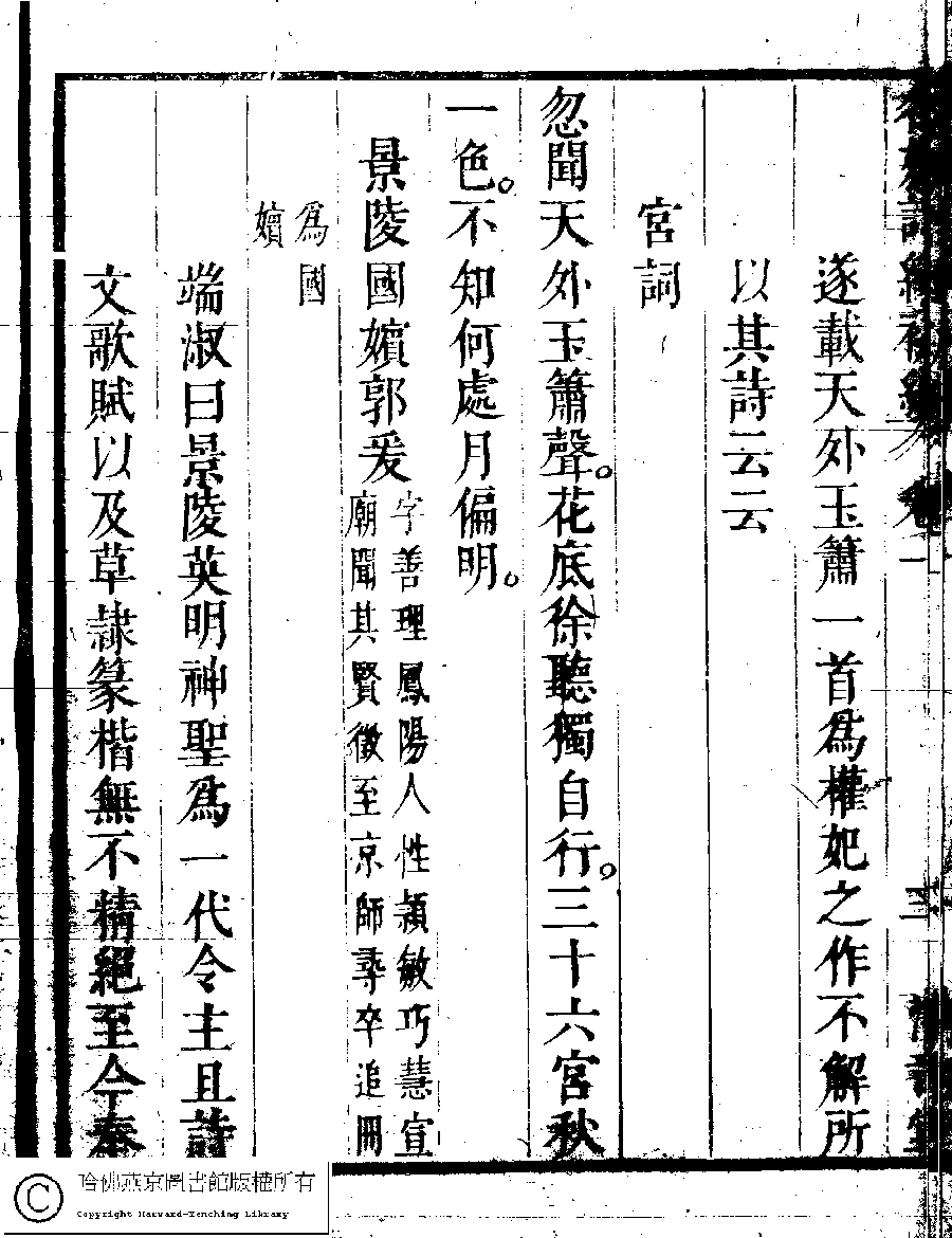 | (PRINT FRIENDLY VERSION) 名媛詩緯初編(清王端淑輯)。清康熙六年(1667)清音堂刻本 ![]() 頁碼 : 1.4a | 点 击 放 大 | 名媛詩緯初編(清王端淑輯)。清康熙六年(1667)清音堂刻本![]() 頁碼 : 1.3b | 点 击 放 大 | 返回 |