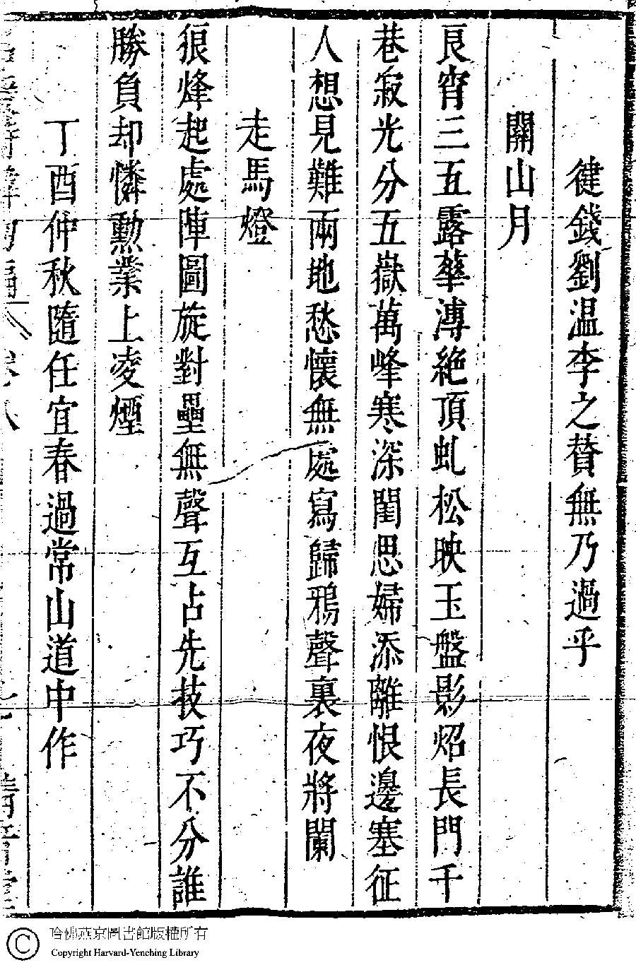 | (PRINT FRIENDLY VERSION) 名媛詩緯初編(清王端淑輯)。清康熙六年(1667)清音堂刻本 ![]() 頁碼 : 8.7a | 点 击 放 大 | 返回 |