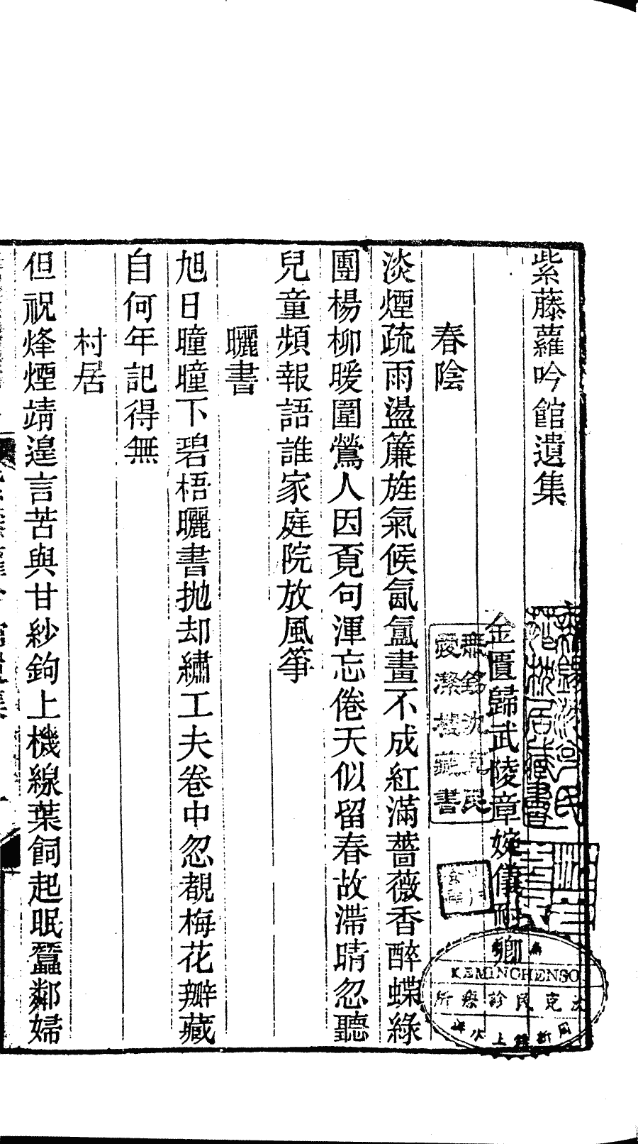 | 原書: 紫藤蘿吟館遺集﹕一卷(清章婉儀撰) |
